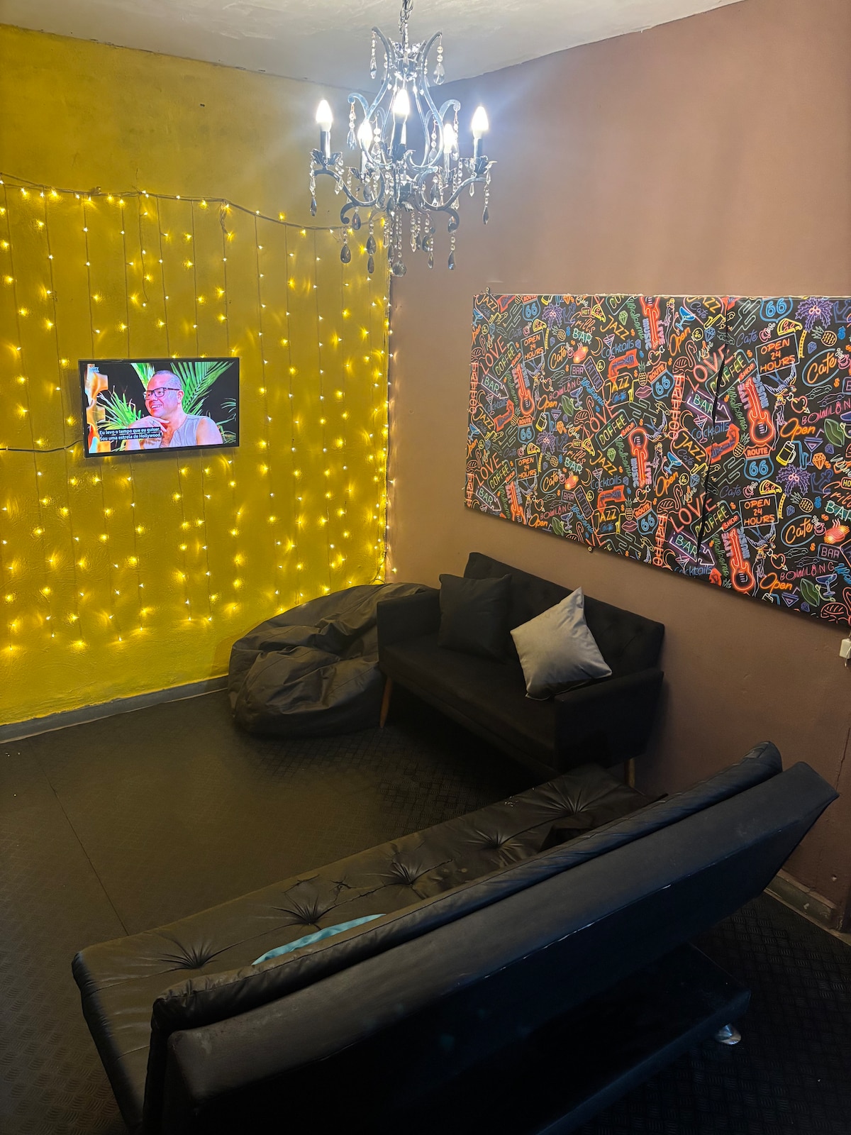 Sıcak bir alan, eğlence alanı. Şelale ve hidromasajlı havuz. Harika bir barbekü, buzdolabı, bira ve tabak çanak bulunan Gurme Alanı. İki yatak odası (süit), 1 çift kişilik yataklı yatak odası ve 2 ranza yataklı yatak odası. Yatak takımı mevcuttur. 200 MB WIFI AGRISHOW - 14 DAKİKA