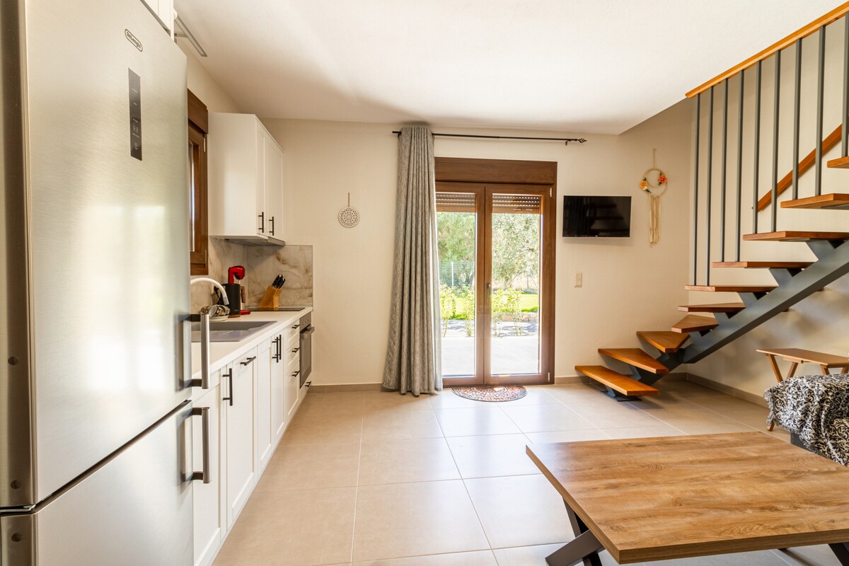 Denize sadece 50 metre mesafede, Halkidiki Latoura'da sessiz bir sahil kompleksinde şık bohem tatil evi. 2 yatak odası (çift kişilik yatak), oturma odası, donanımlı mutfak ve modern banyoya sahip tamamen yenilenmiş dubleks. Evin önünde, yemek ve dinlenme için mükemmel olan ortak bir açık alanda büyük bir yemek masası vardır. Plaj 4 dakikalık yürüme mesafesindedir ve suları sakin, kristal berraklığındadır. Özel otopark • Kablosuz internet bağlantısı • Klima Çiftler ve aileler için idealdir.
