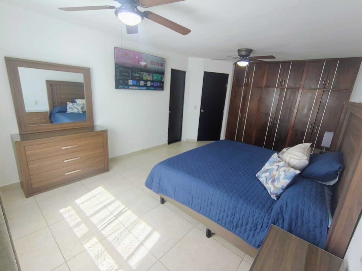 En seçkin bölgelerden birinde modern bir evde Durango'nun ✨ keyfini çıkarın! 🏡 Sessiz, 5 yıldızlı bir alanda yer ⭐⭐⭐⭐⭐alan 2,5 banyolu 3 yatak odalı evimiz (1 King Size 🛏️ ve 4 tek kişilik🛌) konfor, güvenlik ve ihtiyacınız olan tüm olanakları 🚿 sunar. Şunlara sadece 3 dakika mesafededir: ⚾ Beyzbol ve Futbol Stadyumları 🎬 Plaza Punto Guadiana 🍸 Restoranlar, barlar ve kulüpler 🛒 Süpermarketler 🧒 Bebeleche Müzesi 🌳 Sahuatoba ve Guadiana Parkları Hemen rezervasyon yapın ve Durango'nun en iyi yönlerini deneyimleyin! 🎉