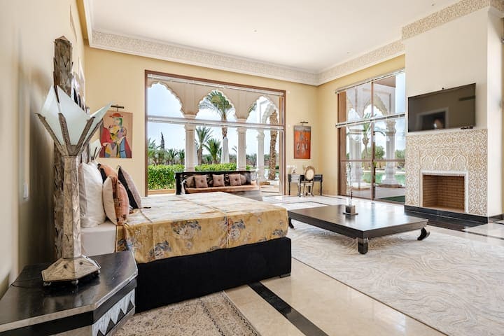 Geleneksel Arap - Endülüs'ü modern dekorasyonla karıştıran atlasın kaynaklarını ve mimarisini keşfedin! Marakeş'in en güzel anıtlarını keşfetmeniz için stratejik konumu. Ünlü Jemaa el - Fna Meydanı, Badia Sarayı, Bahia Sarayı ve Majorelle Bahçesi'ne ve Marakeş'in görkemli medine pazarlarına 15 dakika mesafede, Royal Golf , Amelkis ve Almaaden Golf Sahası sahalarına yakın,