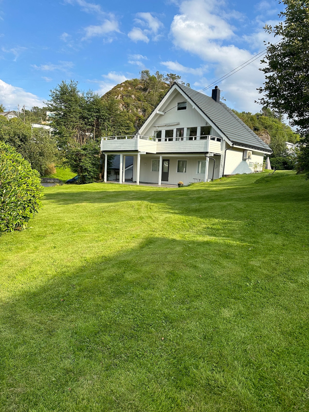 Burada sessiz bir ortamda deniz manzarasının keyfini çıkarabilirsiniz. Haftalık % 20 indirim. Barbekü ve dış mekan mobilyalı geniş teras. Hepsi tek bir katta. Oturma odası, mutfak, 2 yatak odası, çamaşır makinesi bulunan 1 banyo. Kürek çekme, SUP ve kayalar boyunca yürüyüş yapmak için mükemmel alan. Havlular ve nevresim takımları dahildir. İstek üzerine ek banyo 4 araçlık otopark Elektrikli araç şarj cihazı İyi niteliklerle yeni yenilendi. Mağazaya arabayla 10 dakika. Alışveriş merkezine 25 dakika mesafededir. Bergen şehrine 45 dakika Tekne kiralamak mümkündür.