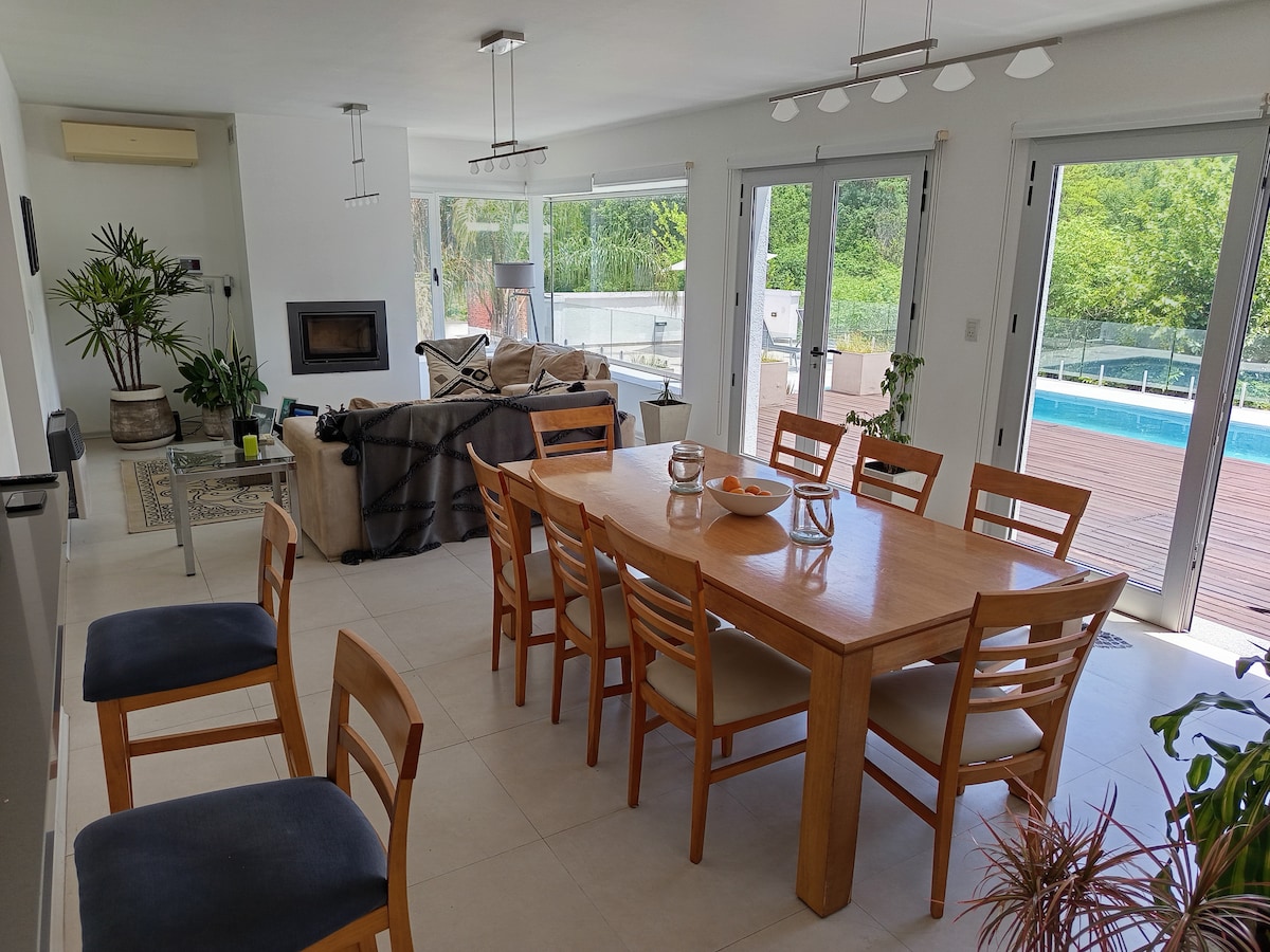 Geniş iç ve dış mekanlara sahip dört yatak odalı Sugar Loaf'un mükemmel manzarasına sahip konforlu beşinci ev. Isıtmalı ortamlar (sıcak/soğuk/sıcak) odun yakan evler. Yetişkin havuzu ve çocuklar için ekstra bir havuzu vardır. Nehre varan kapsamlı ağaçlarla çevrili park. Quincho, ızgara, çamur fırını, şemsiye hamakları Airport Int .' ye sadece 20 dakika mesafededir. Cordoba, iki mükemmel uluslararası golf sahasına sadece 5 dakika, Villa Allende. UNQUILLO "Sanatçıların köyü ".