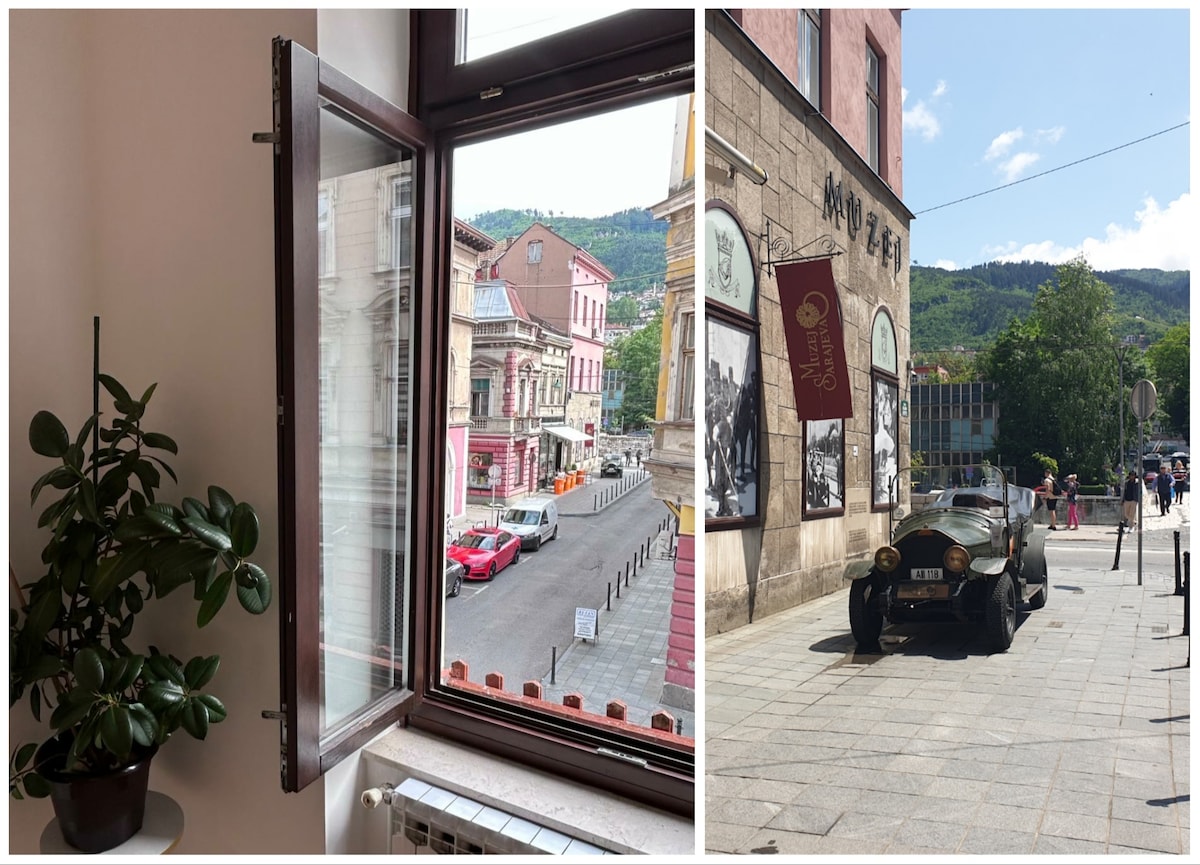 Muhteşem manzaralar ve alan! Eski şehrin kalbinde, Hotel Europe'un bitişiğinde, yeni yenilenmiş bu daire küçük bir parka ve Birinci Dünya Savaşı Müzesi'ne bakıyor. Daireden çıkar çıkmaz Saraybosna'nın en ünlü simgelerini ve turistik yerlerini, tonlarca kahve dükkanı ve restoranı, benzersiz mağazaları ve geleneksel el sanatlarını bulacaksınız. Sadece dışarı çıkın ve keşfedin!:)
