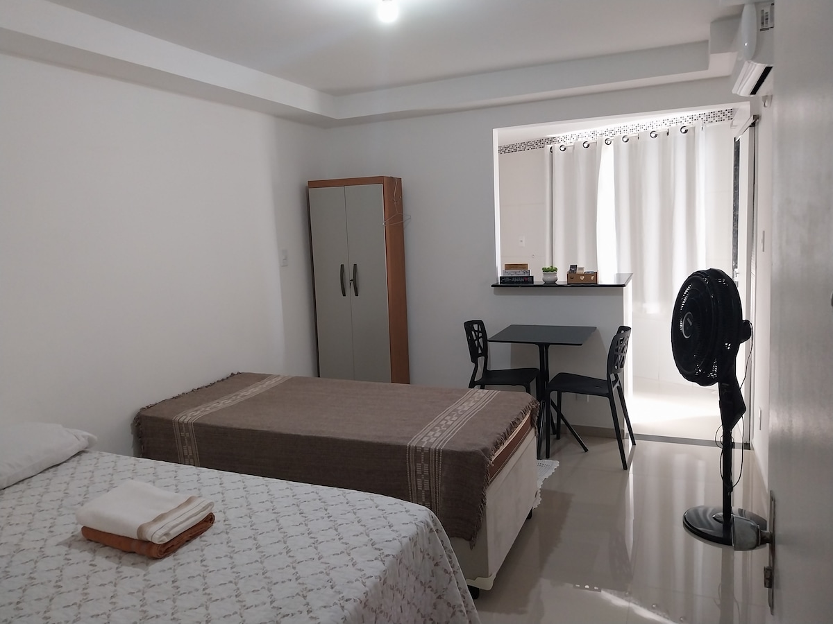 Abrace a simplicidade neste lugar tranquilo e bem-localizado. Horário de check-in flexível. Checkout até as 11h da manhã. Proibido fumar! Ela fica no segundo andar. Próximo à rodoviária, mercados, farmácias, padarias. Não possui estacionamento para carro, apenas para motos. Rua tranquila e fácil de estacionar. Na kitnet você encontrará: travesseiros, toalhas e cobertores. E uma cozinha com os itens básicos para sua estadia, alem de cafeteira e microondas.