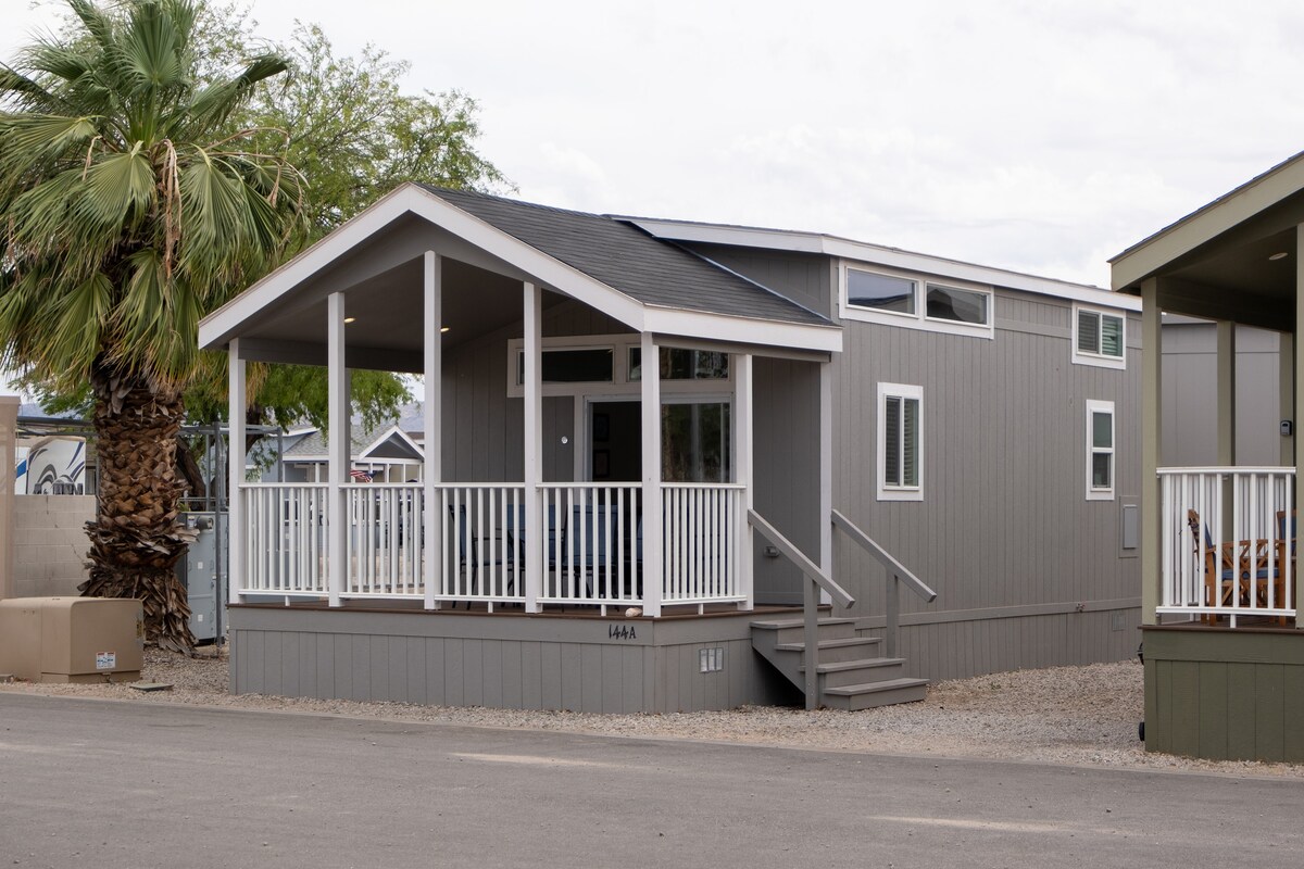 Arizona Oasis Resort'taki samimi küçük evimize hoş geldiniz. Büyüleyici bir çatı katına sahip 37 metrekarelik inziva yerimiz nehir manzarası ve bir park iskelesiyle su sporlarına doğrudan erişim sunar. Verandada dinlenin, şöminenin etrafında toplanın ve Kaliforniya sınırından sadece bir çıkış olan yakındaki Quartzsite'ı keşfedin. Eğlenceli ve maceralı bir kaçamak için mükemmel!