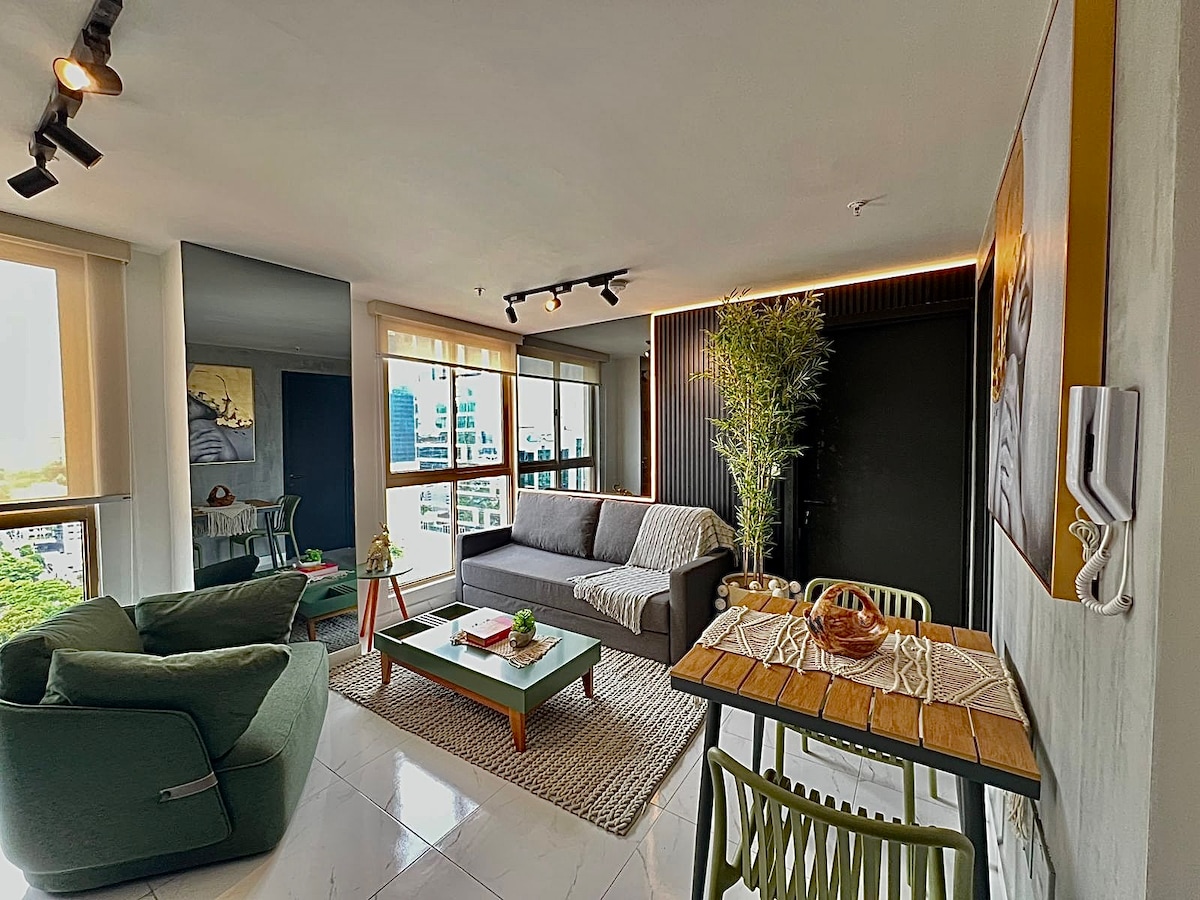 Panama'nın ana caddesi (Calle 50) Bella Vista üzerinde stratejik bir konuma sahibiz, kendinizi bankacılık alanının tam kalbinde bulacaksınız. İş veya tatil için geliyorsanız, burası ideal bir yer, çevrede her türlü restoranı, mağazayı, alışveriş merkezini bulabilirsiniz, yürüyüş yapabileceğiniz veya egzersiz yapabileceğiniz Cinta Costera'ya sadece 10 dakikalık yürüme mesafesinde olacaksınız. Eğlence ve keyif sadece birkaç adım ötede