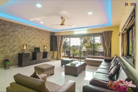 Luxury 6BHK villa with mountain views, fresh air, and a private pool — perfect for family getaways or hosting events. Features spacious lounges, elegant bedrooms with balconies, a full kitchen, smart TVs, Wi-Fi, and daily housekeeping. Enjoy outdoor dining, lush gardens, and serene surroundings. Ideal for celebrations or peaceful escapes, just minutes from scenic trails and local attractions. A perfect blend of nature, comfort, and style.