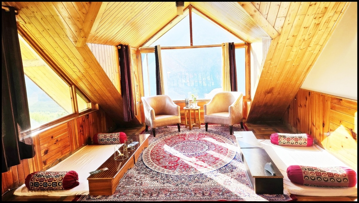 Şehrin koşuşturmacasından uzakta, Himalayaların göbeğinde bir ev. Erik, elma, trabzon hurması ve diğer ağaçlarla çevrili vadinin sakin manzarasının keyfini çıkarın. Dinlendirici bir tatil veya iş için mükemmel olan huzurlu bir konum. Muhteşem dağ manzarasıyla uyanın, balkonda kitap okuyarak dinlendirici bir günün tadını çıkarın veya yakındaki birçok siteyi ve macera aktivitelerini keşfedin; bu konum herkes için bir şeyler sunuyor.