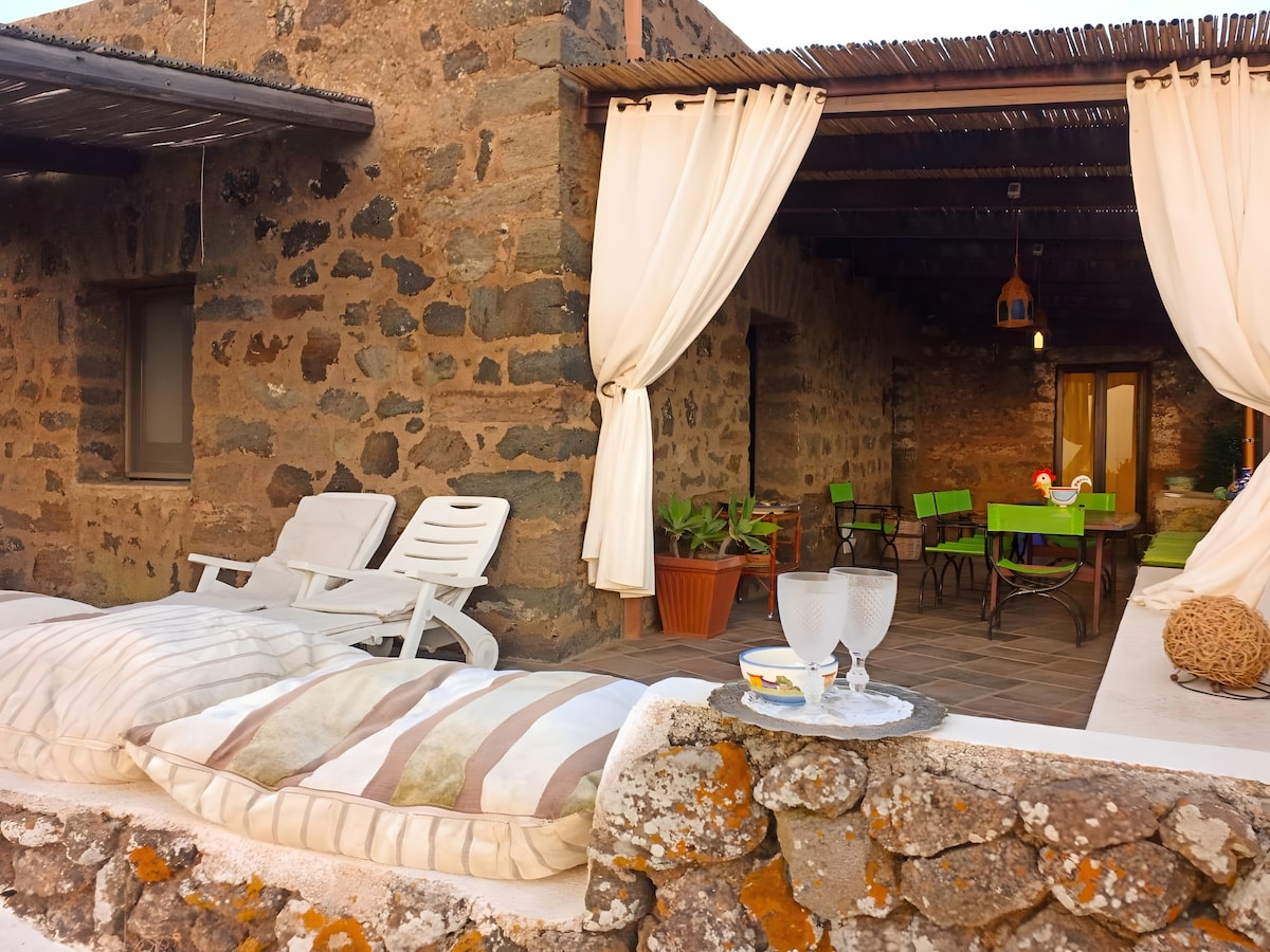 Adanın en etkileyici tepelerinden birinde yerleşim bölgesinde bulunan antik bir kırsal dammuso, olağanüstü deniz manzarası, nefes kesici gün batımları ve ufukta Tunus kıyıları ile karşınızda. Zeytin ağaçları ve üzüm bağları arasında yer alan bu dammuso, son derece özel ve sessiz bir ortam sunarak, doğanın ve dinlenmenin tadını çıkarmak isteyenler için ya da iki kişilik bir tatil için mükemmel bir seçimdir.