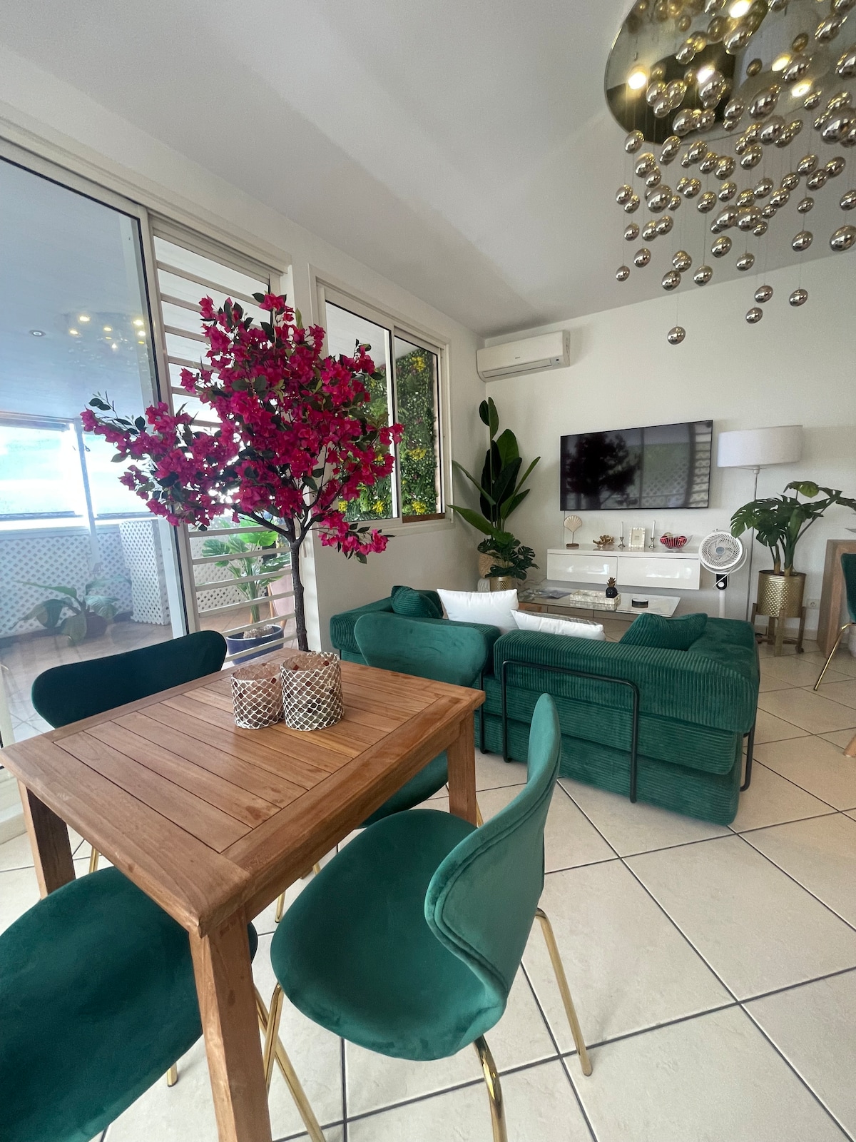 Ideally located 5 minutes drive from TAHITI FAA'A airport, this luxury apartment of 100m2 will make you spend an unforgettable time on Tahiti for your business trips or tourism. Decorated by the architecture firm Anapa Studio ©, this apartment on the 4th and last floor of a unique residence in Tahiti offers a breathtaking view of the island of Moorea. The apartment has large volumes with a ceiling height of 3m. Rooms have 4-star bedding . The master bedroom of 17m2 has a king size bed and is equipped with a dressing room. The second bedroom has 2 single beds of 90cm / 2m that can be mated to give one single king size bed. All the equipment of the apartment is of very high quality. Fully Equipped Kitchen (Oven, Microwave, Induction, Fridge Dispenser Ice, Dishwasher, Nespresso) TV 4K sony, SONOS audio system, very high speed internet , NETFLIX Washing machine, dryer The residence is located 3 minutes walk from the seaside. The residence has a magnificent 20meters long swimming pool. The residence also has a beautiful fully equipped air-conditioned fitness room with latest generation of training equipment. At 3mn walk from the residence, the park VAIPOOPOO offers a recreation area for children, typical food places called "Roulottes". PAPEETE, the capital is accessible by car in 10 minutes by the RDO. A 24/24 supermarket open 7/7 is also available within 10 minutes walk. Marina Taina with its restaurants and diving clubs is 10 minutes walk. Finally, 5mn to walk, you will reach a delicatessen with champagne, cheese, and wine. Our concierge "Brice" will be at your disposal throughout your stay to answer your questions. He will also be able to propose in addition a multitude of services: Reservation and transfer organization Advice, reservations and organization of excursions, restaurant, visits to make your stay more pleasant. Preparation of dinner at home etc ....