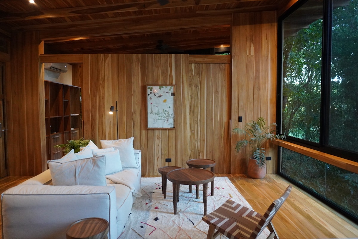 Kosta Rika'da dinlenmek veya macera yaşamak için yeni lüks tatil köyü. Pasifik'in beyaz kumlu plajlarına ve Santa Teresa'daki en iyi sörf noktalarına birkaç adım uzaklıkta, el yapımı mobilyalarla büyüleyici bir bungalov. Açık hava tasarımı, dış mekanı eğimli tavanlar ve özel bahçenize ve duşunuza açılan büyük sürgülü kapılarla bütünleştirir. İç mekanlar yatıştırıcı nötr renkler, doğal malzemeler ve tekstillerle donatılmıştır. Kendinizi çevredeki ormana bırakın veya sahilde yürüyüş yapın. Cennette Pura Vida!