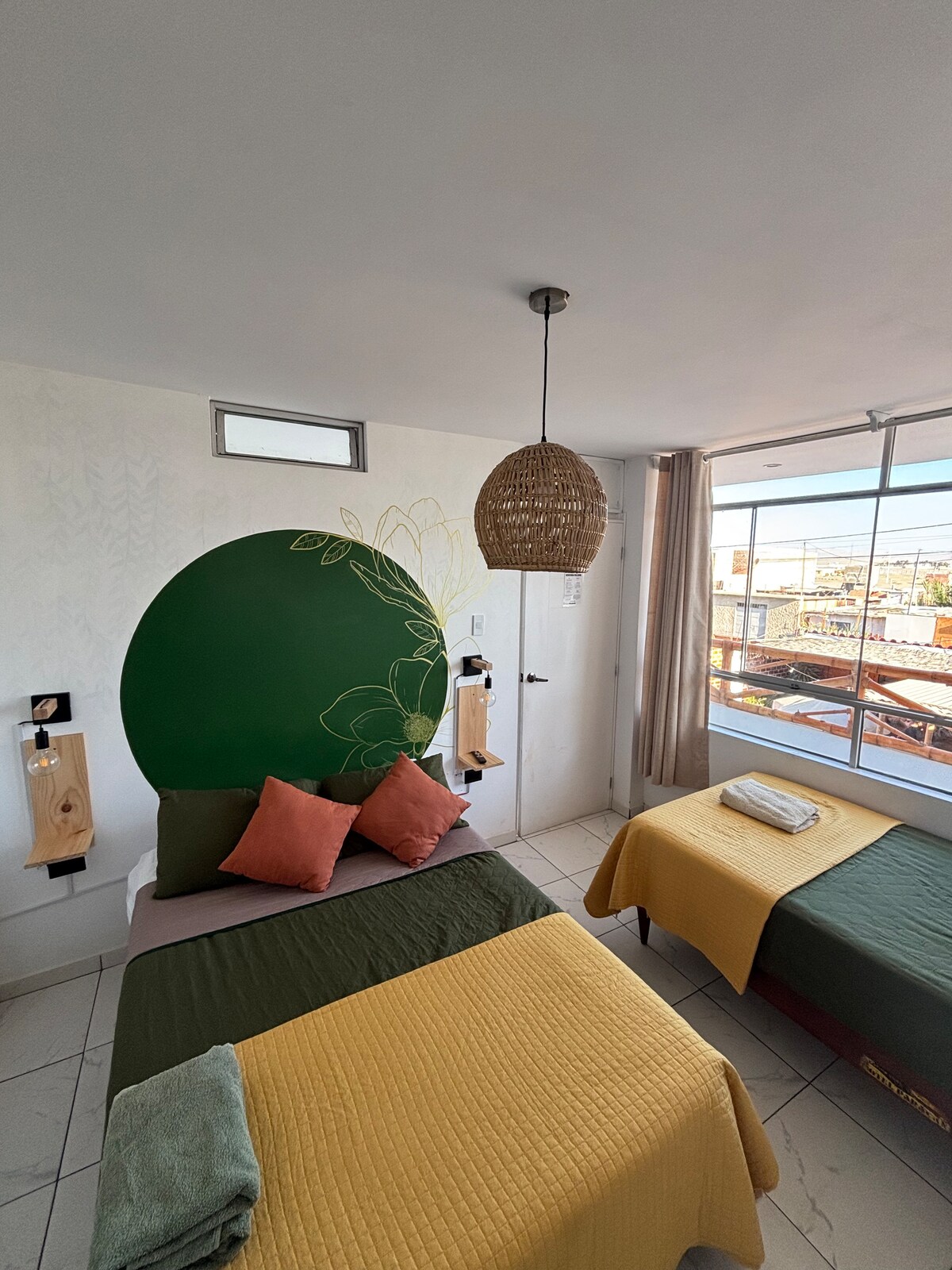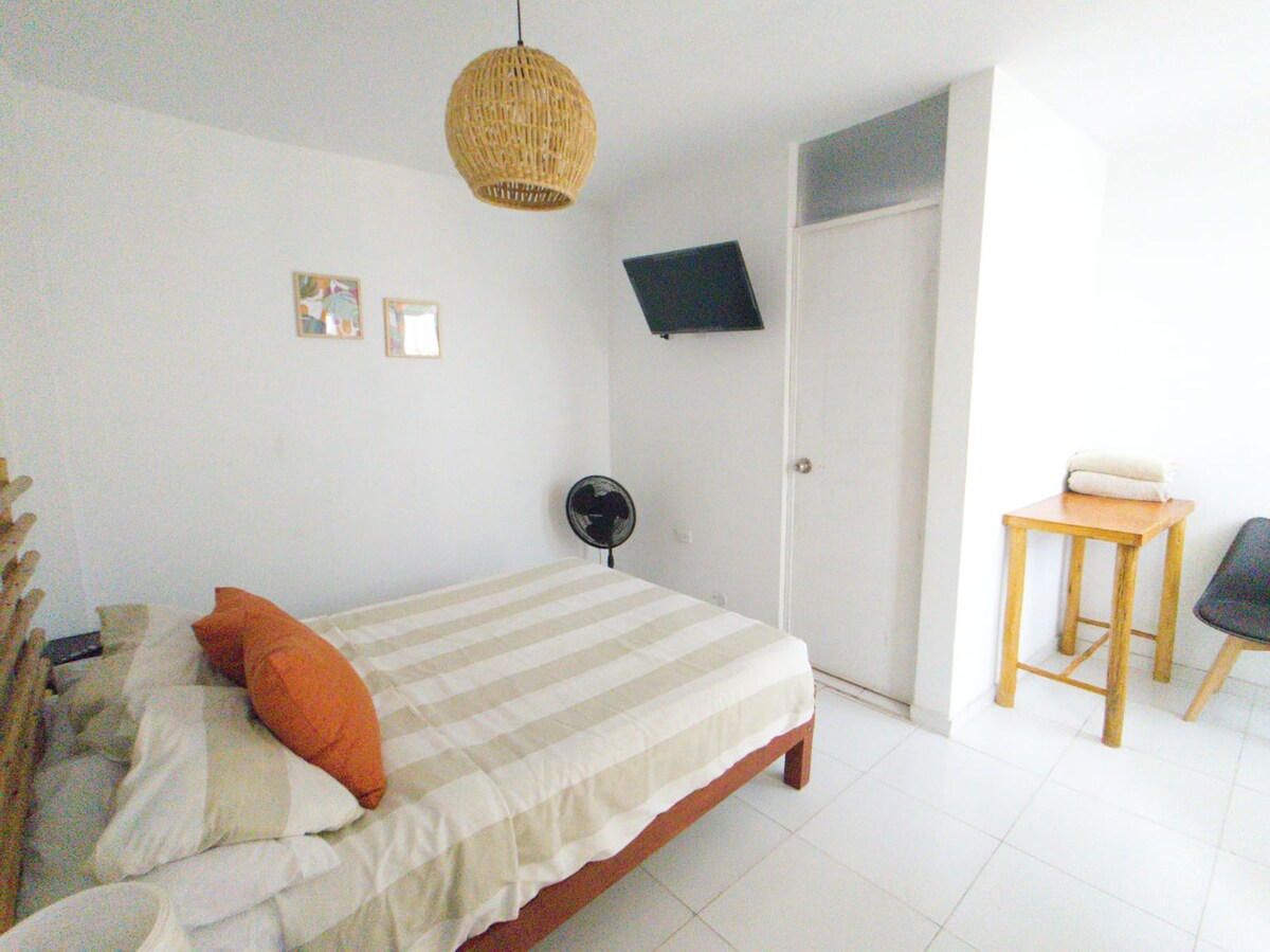 Disfruta de una habitación matrimonial cómoda y acogedora, ideal para parejas o viajeros que buscan descanso y privacidad. La habitación cuenta con cama matrimonial, baño privado, buena iluminación y un ambiente tranquilo. El espacio está pensado para que te sientas como en casa, con una limpieza cuidada y detalles que hacen la estadía más agradable. Incluye desayuno básico para iniciar el día de manera práctica y cómoda. Estaré disponible para ayudarte con recomendaciones y cualquier consulta.
