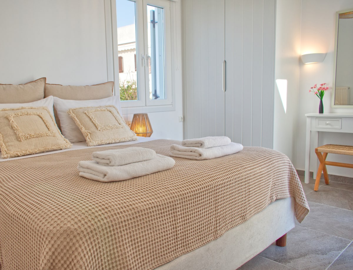 Açık tonlarda dekore edilmiş ve zarif bir şekilde döşenmiş güzel dekore edilmiş Smirida Süitimiz, en fazla 2 kişiyi barındırabilen iyi döşenmiş bir konaklama sunar. Ayrıntılara gösterilen titiz özen, ailelerin lüks bir ev ortamında günlük programlarının tadını çıkarmalarını ve planlamalarını sağlar.