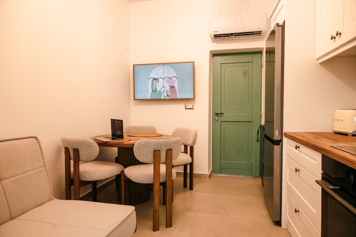 Chios kasabasının göbeğinde özel bir çatı katı kaçamağı! Bu modern stüdyo daire, Ege Denizi'nin çarpıcı panoramik manzarasına sahip huzurlu bir konaklama sunuyor. Öne çıkan özellikleri mi? Şezlonglar, yemek masası ve nefes kesici deniz ve gün doğumu manzarasına sahip devasa bir özel teras. Konfor, sakinlik ve rahatlık arayan yalnız gezginler, çiftler veya dijital göçebeler için idealdir; kafelere, mağazalara ve limana sadece birkaç adım uzaklıktadır.