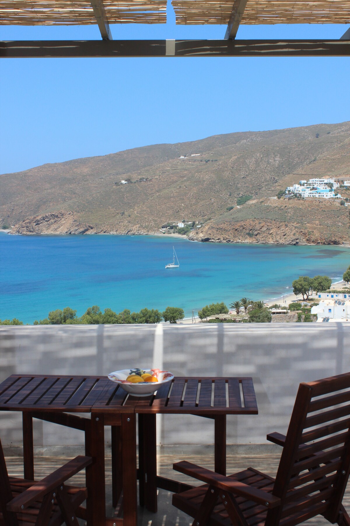 The Oceanos double Studio is a single room studio in Aegiali bay which fits 2 people, 25 square meters. It has a double bed , a kitchenette, a bathroom with a shower and A/C. The Oceanos Studio has a spacouse balcony with a beautiful view over the village and Aegiali bay. Free parking. Within a 10 min walk you are in the center of the lovley village and the wonderful beach of Aegiali bay.