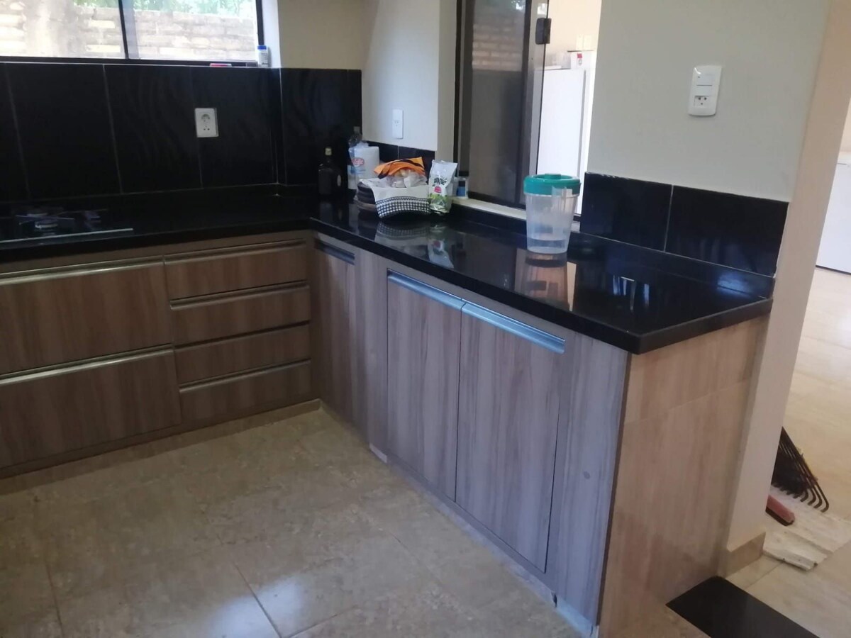 Bu konaklama yeri, Puerto Iguazú'nun tüm cazibe merkezlerine çok yakın olan olağanüstü bir konum sunuyor. Geniş balkonumuzda panoramik manzaraların, eşsiz gün batımlarının, barbekü gecelerinin keyfini çıkarın. Ebeveyn banyolu 1 numaralı oda. King boy yatak. Oda 2. Queen boy yatak. Koridorda banyo. Elektrikli ocak, mikrodalga fırın, blender, ekmek kızartma makinesi, kahve makinesi, donduruculu buzdolabı, bar, tam tabak bulunan büyük mutfak.