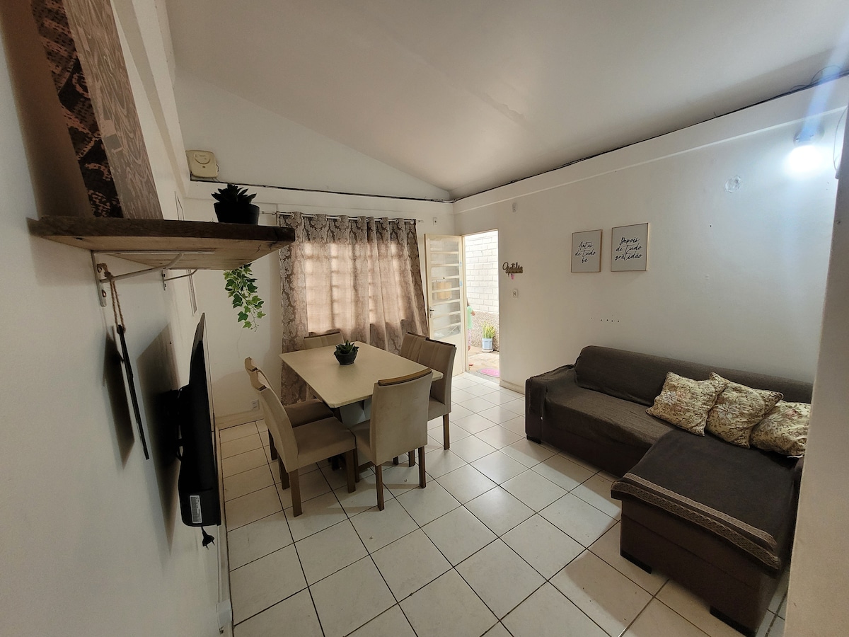 Bu özel konaklama yerinin cazibesinin ve huzurunun tadını çıkarın. İş için veya gezi yapmak için seyahat edenler için rahat bir daire. Parauapebas'ın en iyi semtlerinden birinde, restoranlara, süpermarketlere, barlara, spor salonlarına yakın. Klimalı ve çift kişilik yataklı 2 konforlu odası, 1 yatak odası süiti, konforlu oturma odası, tam mutfak, elektrikli kahve makinesi ve yemeklerinizi rahatça yapmak için gerekli olanaklara sahiptir.