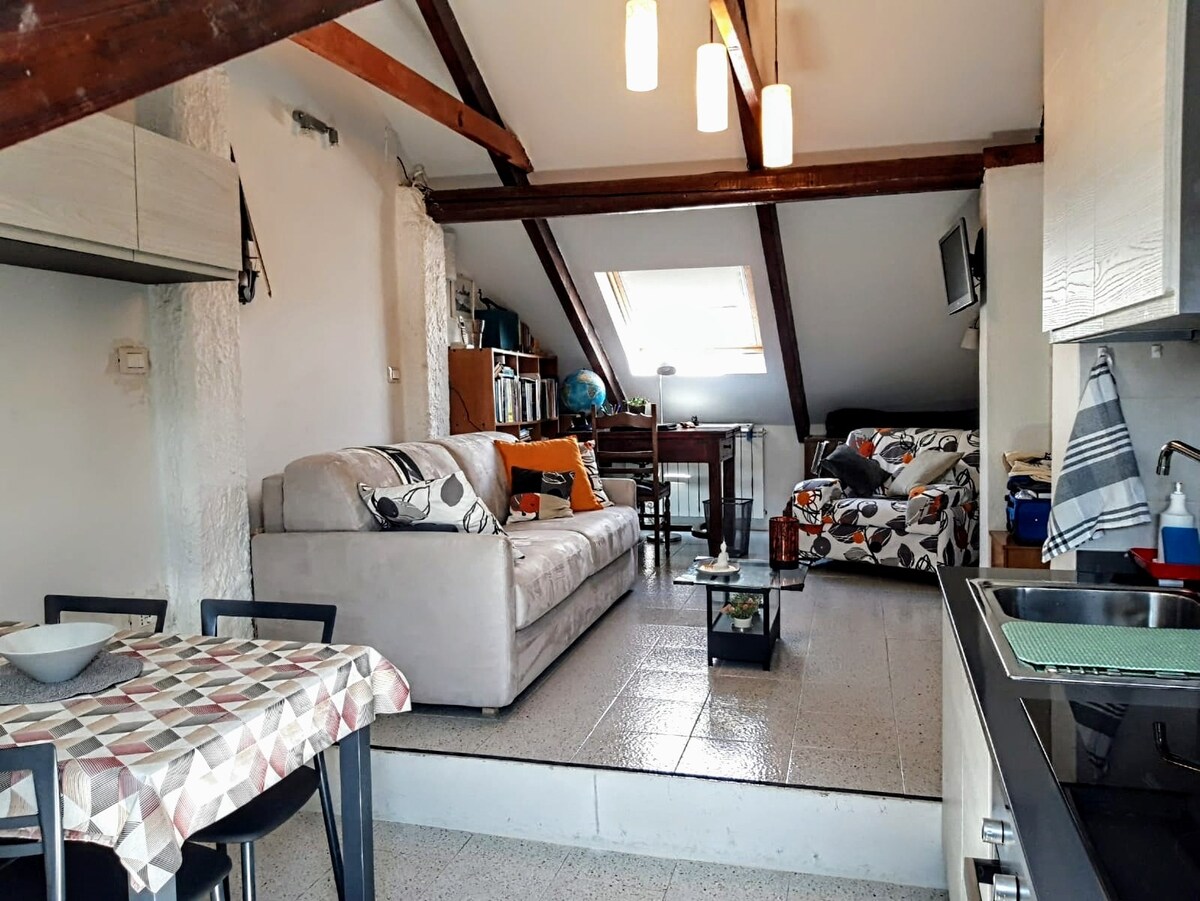 Çiftin alanında dördüncü katta konaklama, küçük mutfak, çekyatlı ve masalı oturma odası, klimalı tavan arası yatak odası, duşlu banyo. Kolay giriş kaydı, talimatları vermek için sizinle iletişime geçeceğim. Yakınlarda Treasurer's Park var. Evin altından metro veya 13 numaralı tramvay gibi toplu taşıma araçlarına çok uygun, sizi birkaç durakla şehir merkezine götürür. Torino'da rahatça yaşamak için Asansör yok.