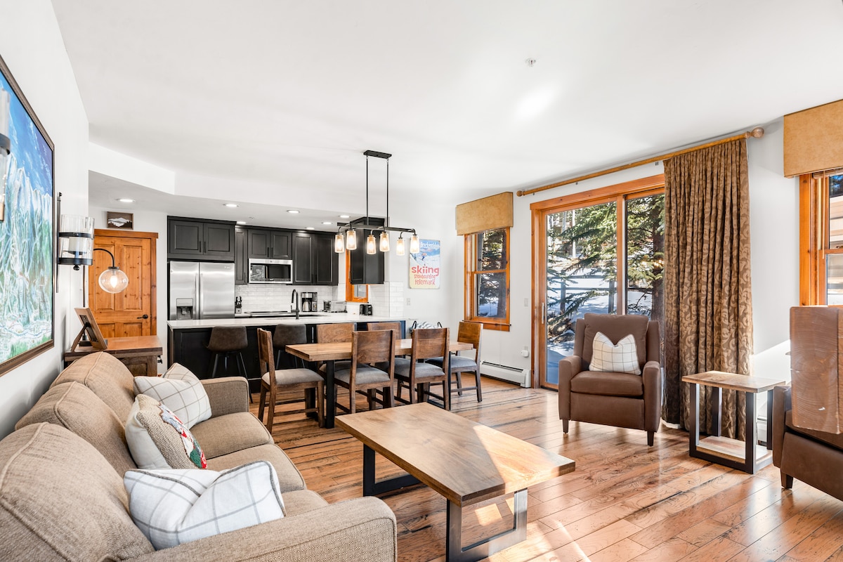 Bu Mountain Modern stüdyosundan 8 ve 9 numaralı zirvelerin muhteşem manzarasının keyfini çıkarın. Ana Cadde'nin restoran ve eğlence olanakları arka kapının hemen dışında olduğu için mükemmel bir konum. 1/2 blok yürüyün veya gondola için 1 durak servise binin. Saat 4'te kayakla geri dönün! Queen yatak ve queen hafızalı köpük şilteli yeni bir çekyat. Yeni paslanmaz çelik aletlerle dolu bir mutfak. Granit. Ünitede çamaşır makinesi/kurutucu. Havuz, jakuzi, fitness merkezi, bar servisi olan salon, kayak deposu. Otopark.