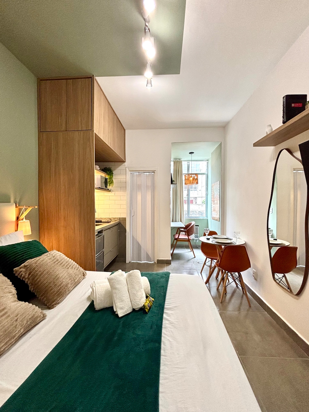 Studio tranquilo e bem decorado | A/C, Wi-Fi, TV