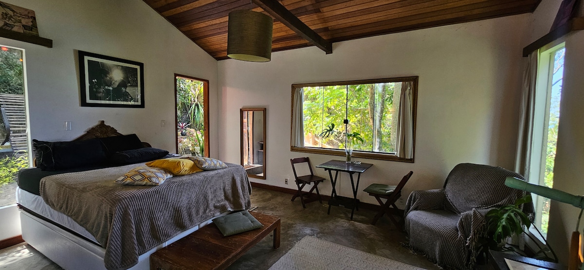 Ormanda, doğayla çevrili, deniz manzaralı ve gün doğumu manzaralı bir ev. Sheraton Hotel'in önünde, plaja sadece 5 dakika yürüme mesafesinde güvenli bir semt. Leblon, São Conrado ve Ipanema'ya yakın. Burası Rio'nun en eşsiz evlerinden biri: ağaçlarda zıplayan maymunlar, ziyarete gelen tukanlar ve geceleri okyanusun sesiyle uykuya dalıyorsunuz. Özel giriş • Özel çatı terası • Özel banyo • Klima • Queen boy yatak • Odada mini buzdolabı • Otopark • Ücretsiz kahve