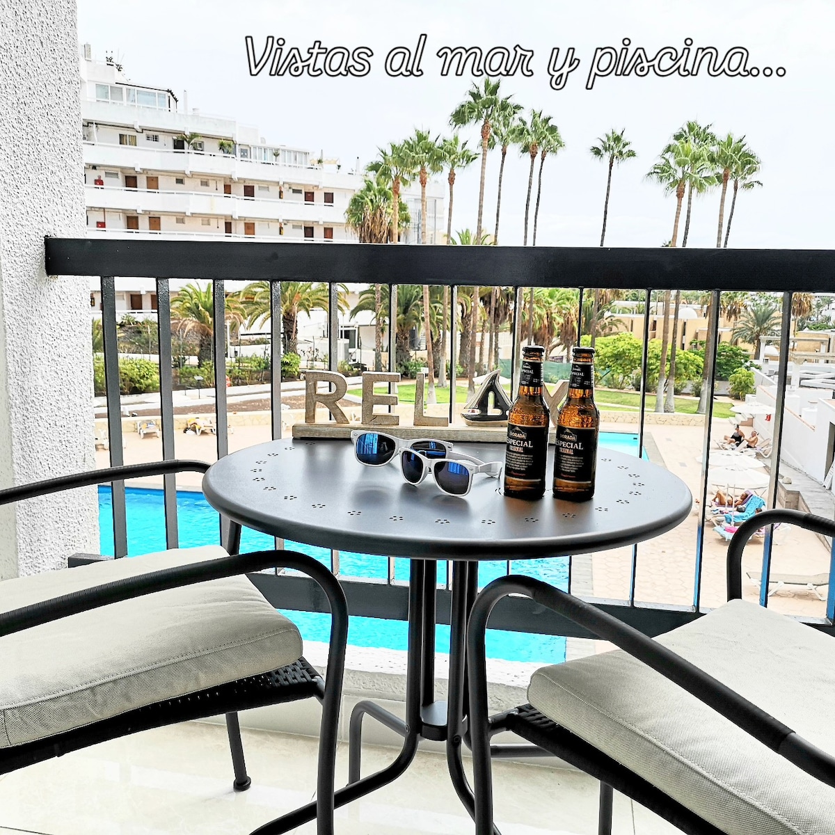 Checkout my fully equipped 1 bedroom newly renovated and comfortable apartment in the heart of Playa de las Americas (the most vivid region) in Tenerife just 1 street from the sea! Enjoy the direct ocean balcony view, a king size anatomic double bed, free Wifi up to 300Mbps, free access to the pool, free parking, new IKEA kitchen with oven and all kitchenware of highest quality, new electric appliances, sleeping sofa, laundry, LCD TV and much more!