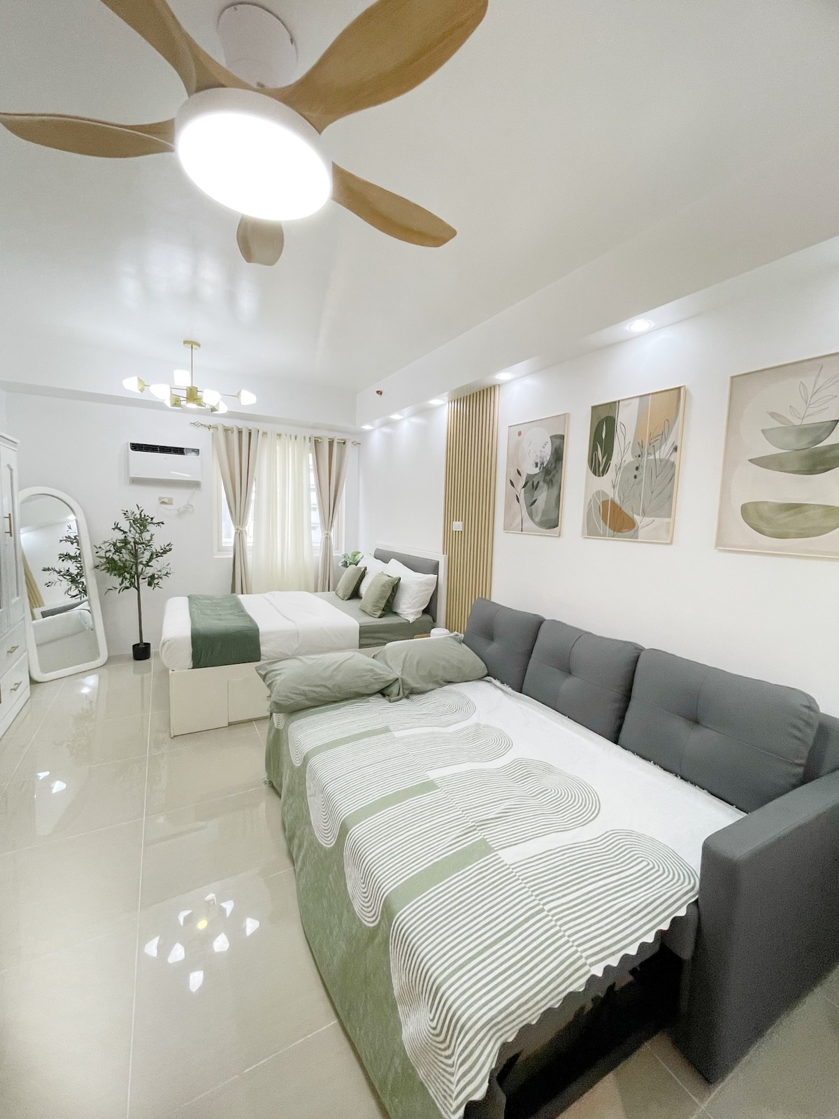 Modern&spacious 1BR w/ balcony and pool just a few kilometres from the airport and within walking distance from numerous attractions in the Manila Bay area. Well-equipped kitchen, sunlit living room, comfortable bed, Wi-Fi, Netflix, aircon & TV in both living and bedroom. Perfect place to stay for couples, small families or business travellers. Sauna and kids play area - free to use Pool - free up to three guests; P200 for each additional guests.