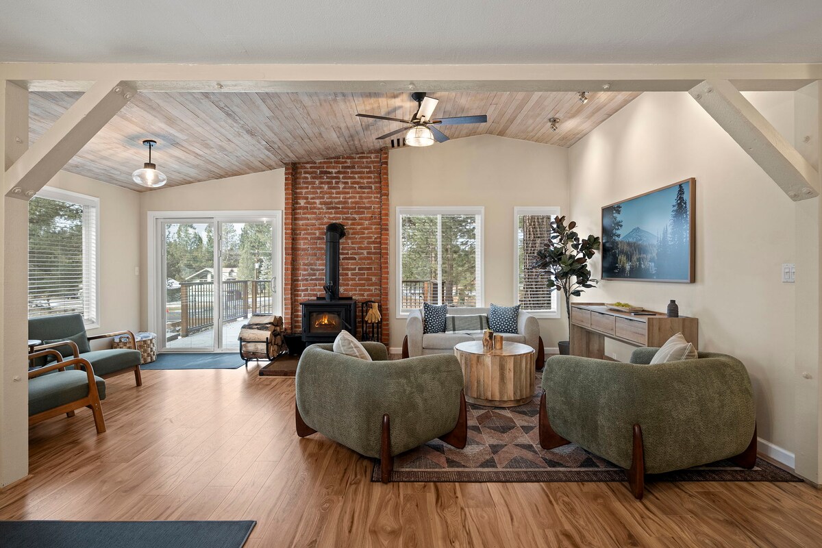 Evimiz, Deschutes Nehri'ndeki suya kolay yaz erişimi ve Mt Bachelor'daki karlı maceralara kolay kış erişimi sağlayan konumu ile özeldir. Huzurlu su manzaralarımızı ve özel rıhtımlarına, kanolarına ve bisikletlerine erişimi seven misafirler yaz aylarını erkenden rezerve ediyor. Kış aylarımızda, karlı çamları deneyimlemek ve Mt Bachelor'ın tozlu yamaçlarına ve çevredeki patikalara kolayca erişmek isteyen misafirleri ağırlıyoruz. Yaz veya kış misafirleri, sabah akşam bozulmamış jakuzimizin keyfini çıkarıyor.