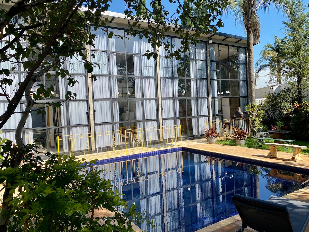 Beş süit ve iki yatak odası ile Avrupa malikane tarzında yüksek standartlı konaklama, hepsi 23 kişi için yatak, çarşaf ve havlu ile. Dört kişi için iki yatak odası, oturma odası, mutfak ve banyoya sahip ek küçük ev seçeneği (ek ücrete bakın). Campinas kırsalında, Barão Geraldo'nun lüks ve güvenli semtinde ısı yalıtımlı mülk, 700 m2 inşaat, birkaç balkon ve iki teras. Vivo fiber 500 Mb ve JBL Partybox 320 ses sistemi