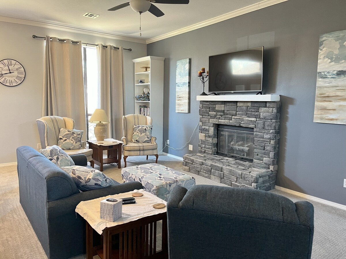 Boone Pickens Stadyumu'na sadece 11 dakika uzaklıkta ve Stillwater'ın sunduğu en iyi şeylere yakın olan huzurlu kır evimize hoş geldiniz. Kasabada yoğun bir günün ardından özel inzivamızda dinlenin. Verandada sallanın ve geyikleri ve hindileri izleyin ya da büyük arka verandada sakin bir akşam yemeği yiyin. Serin sonbahar akşamlarında açık hava ateş çukurunda sosisli barbekünün tadını çıkarın veya soğuk kış gecelerinde iç mekandaki şöminenin yanında ısının. Burası sizin Stillwater “Oyun Günü” eviniz olsun.