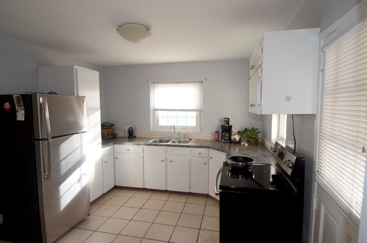 ** Bermuda Covid giriş gereklilikleri ile uçuş varışında erken giriş garanti edilir. ** Tamamen mobilyalı, yeni yenilenmiş, Bermuda temalı, bir yatak odası, bir banyo, Rosemont Bulvarı'nda bulunan iki katlı sıra ev. İç 150-179 cm genişliğinde yatak Duşlu banyo Split klima ve ısıtma ünitesi. Nespresso makineli tam mutfak Tüm yemek ve pişirme gereçleri Çamaşır yıkama Çalışma masası 2 düz ekran TV. Kablolu TV, kablosuz internet bağlantısı ve yerel telefon. Dış mekân Özel veranda/barbekü/açık havada yemek Ortak havuz