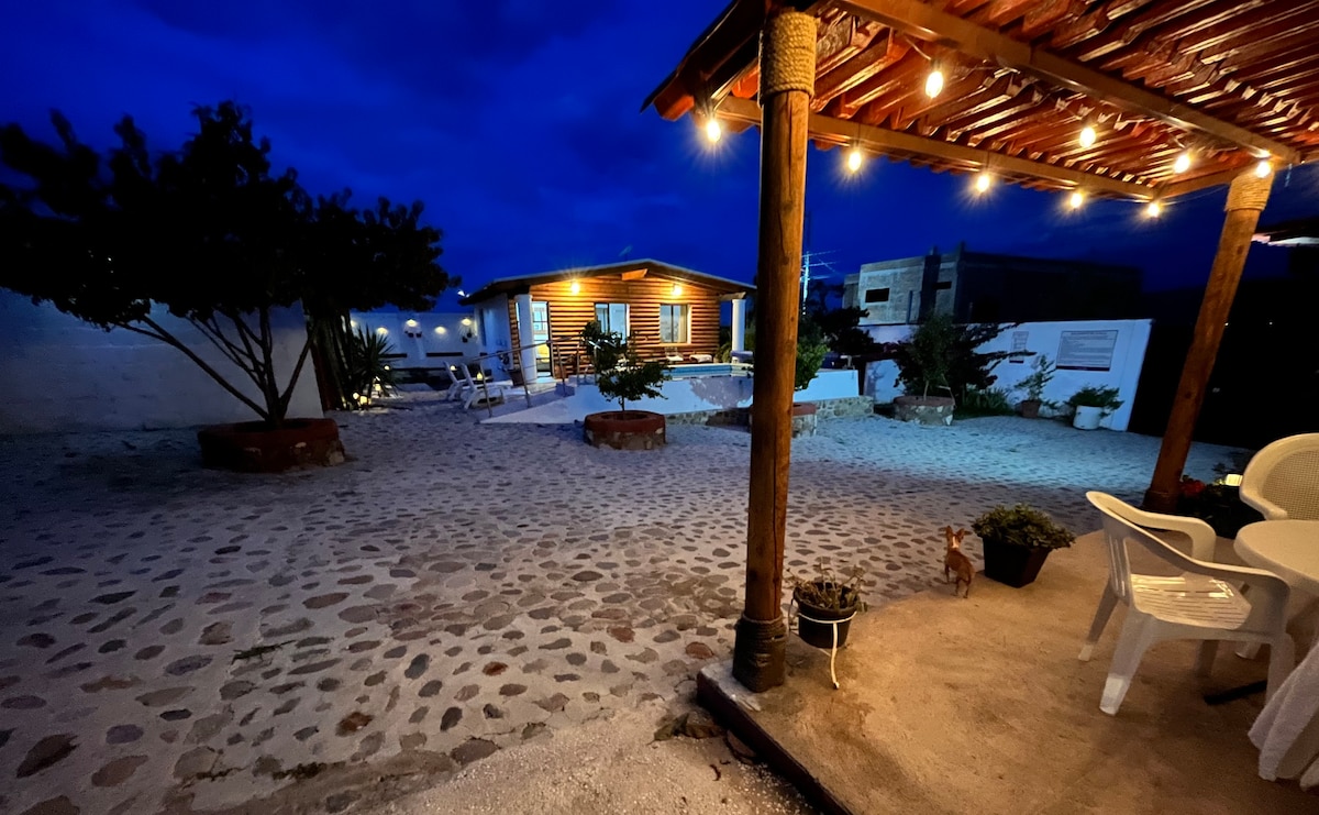 Güzel ve konforlu Meksika tarzı ev. 8 kişilik, Tequis şehir merkezine arabayla 10 dakika, Peña de Bernal'a 30 dakika ve çeşitli üzüm bağlarına 20 dakika mesafede. Güneş enerjili 7x4 ısıtmalı havuz (tamamen güneşe bağlıyız) sadece sizin için. Barbekü, ateş çukuru, şömine (odun veya kömür içermez) çeşme, jakuzi, donanımlı mutfak, kablosuz internet bağlantısı, 50" 4K akıllı TV ve kablolu TV, Netflix, YouTube, Prime Video. 300 $ maliyetle 2 evcil hayvan kabul ediyoruz (bunları UYGULAMAYA kaydedin).