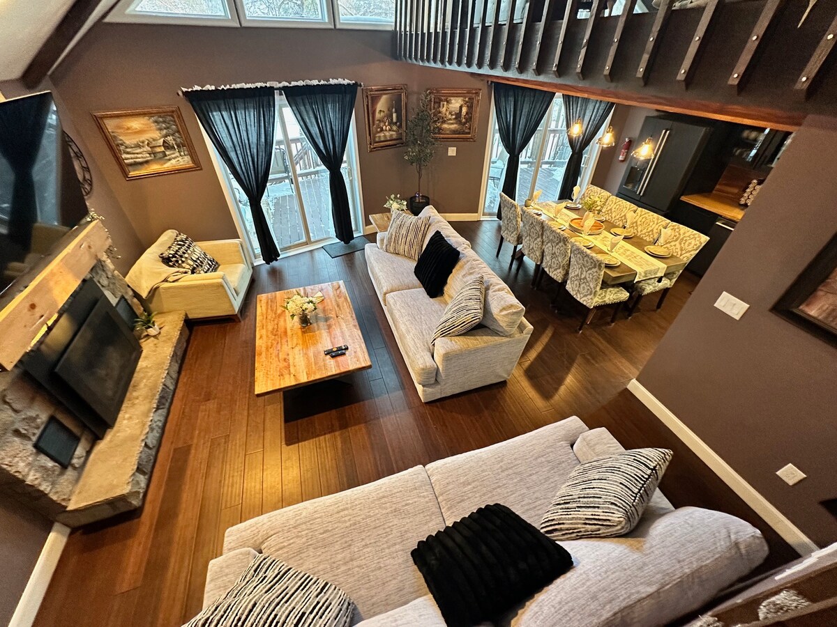 Şık Pocono dağ evi | Jakuzi + muhteşem çocuk çatı katı