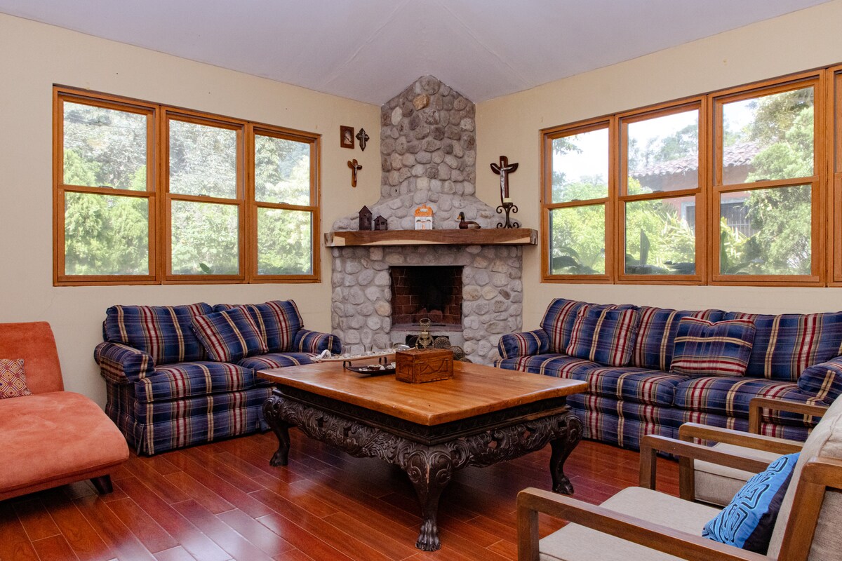 Büyükbabamız tarafından 1946 'da inşa edilen El Valle'nin büyük ve samimi aile evimize hoş geldiniz. Tamamen yenilendi. Sizi geniş 6400 m2 bahçemizi keşfetmeye ve onu çevreleyen nehrin sesleriyle rahatlamaya, teras hamaklarımızdan birinde dinlenmeye, 100 'den fazla y.o. dev ağacımızdan sallanmak ve bacanın etrafında bir fincan sıcak kakaonun tadını çıkarmaya davet ediyoruz. Ünlü Hot Springs'in hemen yanında, şehir merkezine yürüme mesafesinde. Büyük aileler veya arkadaş grupları için mükemmeldir.