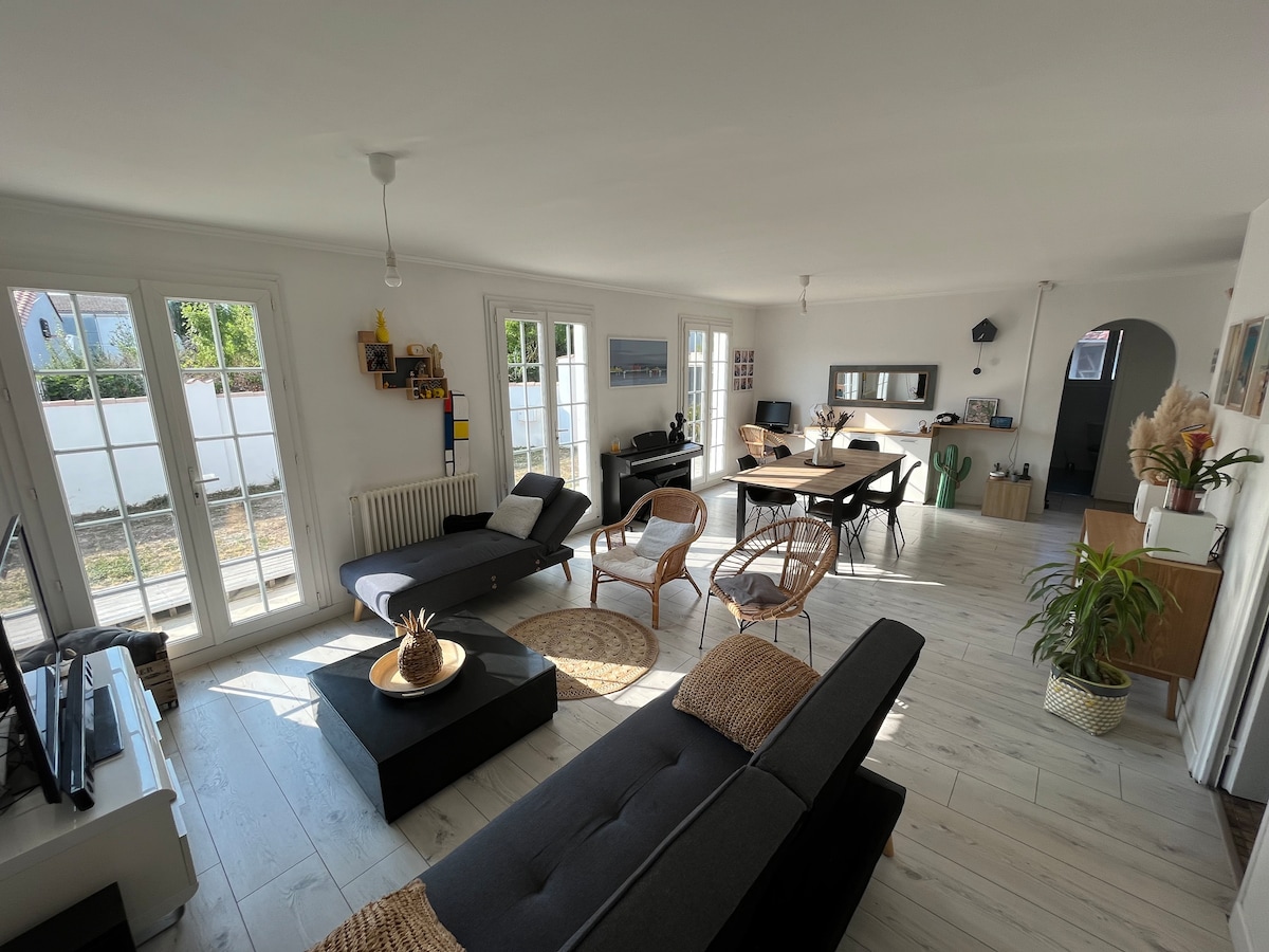 Profitez en famille ou entre amis de ce grand logement de 110 m² à proximité directe de La Rochelle sur une parcelle clôturée de plus de 400 m², il se compose au RDC d'un salon/séjour avec un canapé-lit, une cuisine ouverte et équipée, une chambre, un w.c., une salle de bain avec baignoire, un garage fermé et une terrasse. Au premier étage, 3 chambres et une salle d'eau avec w.c. Venez séjourner jusqu'à 8 personnes (4 chambres avec lits 140 et un canapé convertible dans le salon).