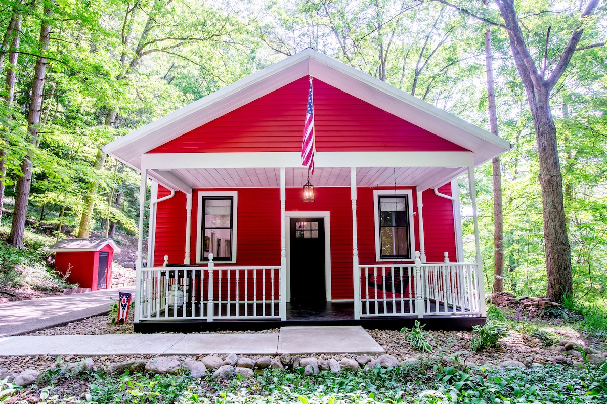 Bu aydınlık ve eğlenceli pembe kır evi Mohican Eyalet Parkı'nın göbeğindedir! Ohio'nun kano başkentinde maceralar için bir üs :) Kulübemiz, caddenin karşısındaki güzel bir par 3 golf sahasına bakan bir tepeye kurulmuştur. Geniş beton verandamızda jakuzi, mısır deliği ve manzaralı huzurlu esneme veya yoga için yoga matları var! Tam donanımlı bir mutfağımız, masa oyunlarımız, akıllı TV'lerimiz ve çocuklarınızın veya arkadaşlarınızın kesinlikle seveceği tamamen özel yapım bir ranza odamız var!