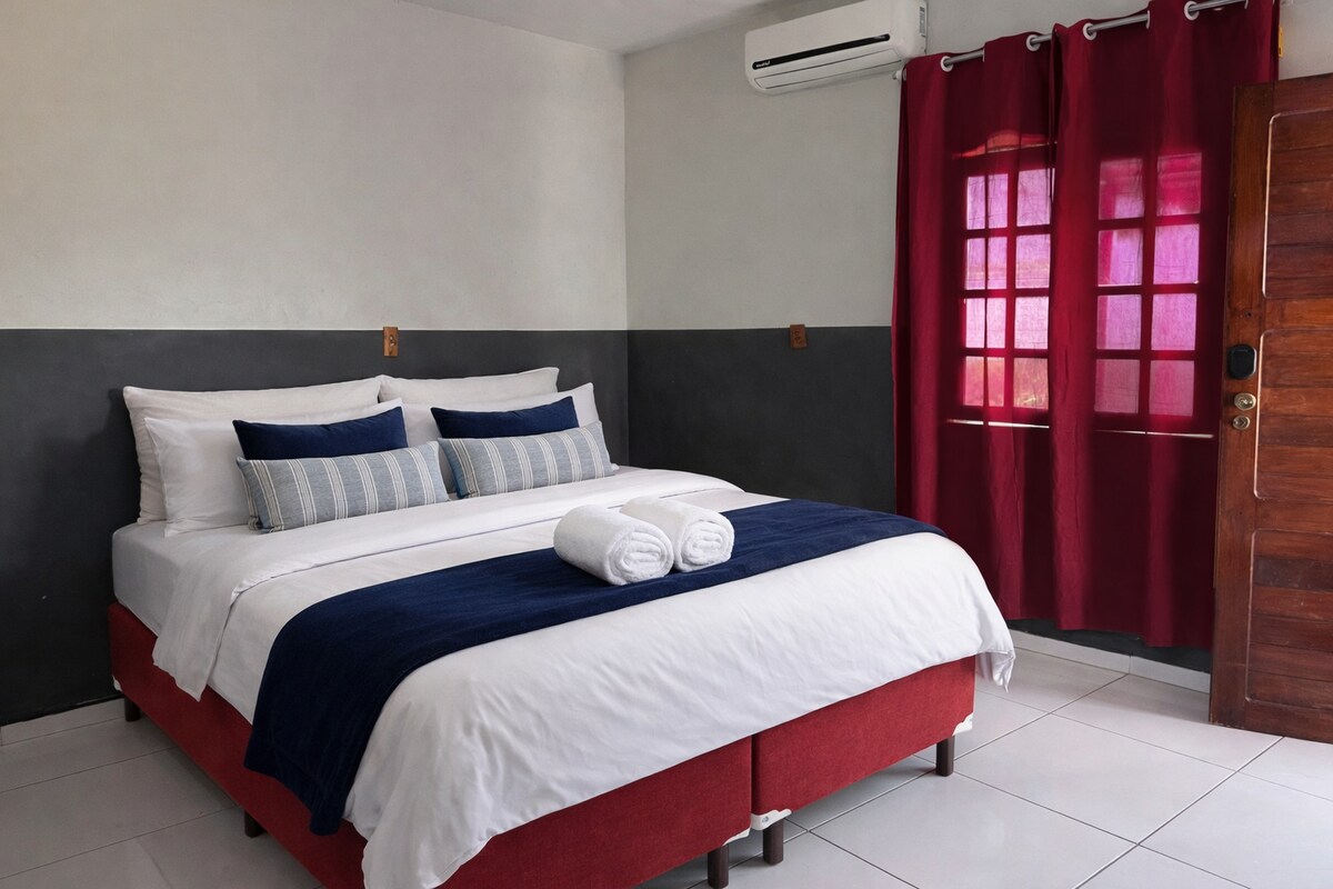 Centro de Petrolina'da modern 2 yatak odalı daire. Renkli detaylar ve birinci sınıf kaplamayla çağdaş dekorasyon. Odalar: 1 süit + 1 yatak odası (çift kişilik yataklar). Kromoterapili Bwc Suite. Salonda akıllı TV. Eksiksiz mutfak: tabak çanak, çatal bıçak takımı, mikrodalga fırın, su ısıtıcısı, blender, sandviç makinesi ve tüm mutfak gereçleri. Kliniklere, alışverişe, mağazalara ve restoranlara yakın. Kapasite: 4 kişiye kadar (daha fazla kişi için bkz.) Aileler, profesyoneller veya hareket halindeki gruplar için mükemmeldir.