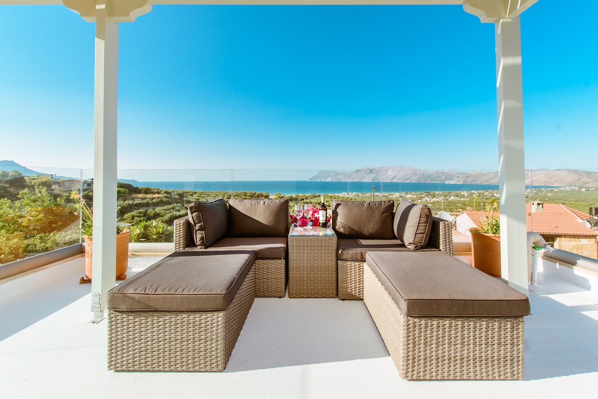 Phalasarna bölgesinde açık havada oturma alanı olan kiralık tatil yerleri