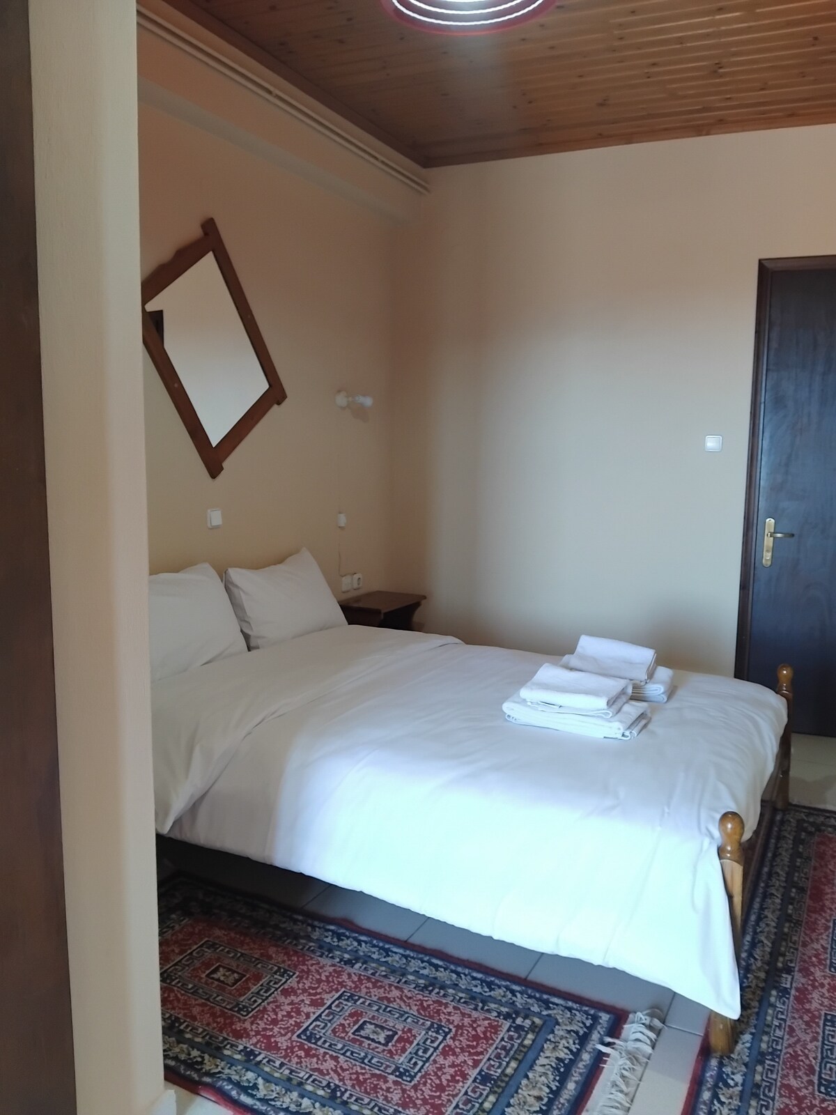 Άνετο δίκλινο δωμάτιο 10–12 τ.μ., ιδανικό για ζευγάρια ή μεμονωμένους επισκέπτες. Διαθέτει διπλό κρεβάτι, ιδιωτικό μπάνιο, τηλεόραση, ψυγειάκι, Wi-Fi και κεντρική θέρμανση. Το δωμάτιο βρίσκεται στον 2ο όροφο του κτιρίου με κοινή είσοδο. Η πρόσβαση γίνεται μόνο από σκάλες, δεν υπάρχει ασανσέρ.