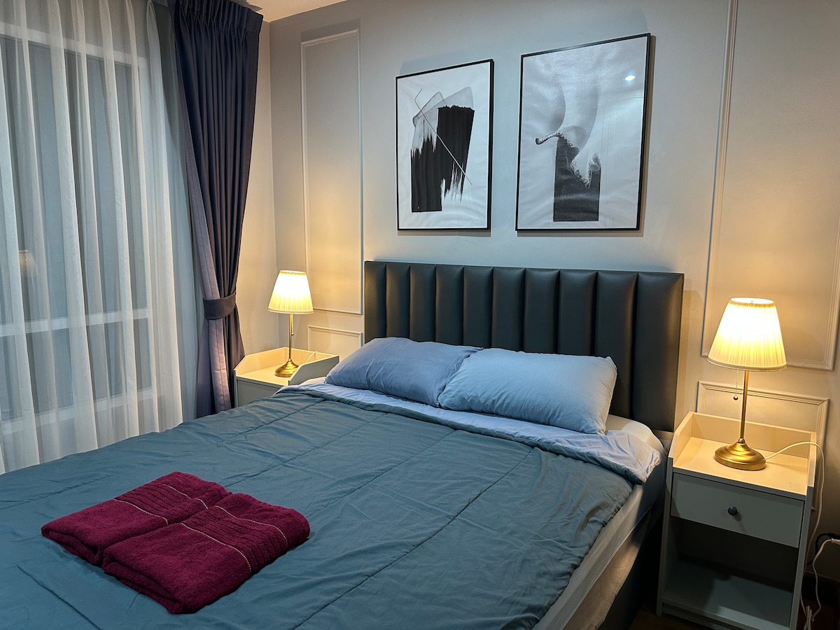 欢迎您选择并且入住我的公寓,希望您有一个很棒的泰国之旅。 房子位于RAMA9,2024年交付的LOFT公寓。房间面积40平左右,包括一间卧室、一间客厅和餐厅、一间厨房和一间浴室,轻松容纳3名成年人。(tps: 在订单入住人数为1-2人时,默认只有卧室里一张床,如果您需要增加铺沙发床,请在预订时将人数填写为3人,并在预订后联系我们特别告知,我们会在您入住前安排工作人员铺好沙发床) 订单价格包括使用整套房源,以及健身中心,游泳池以及共享办公空间的费用。