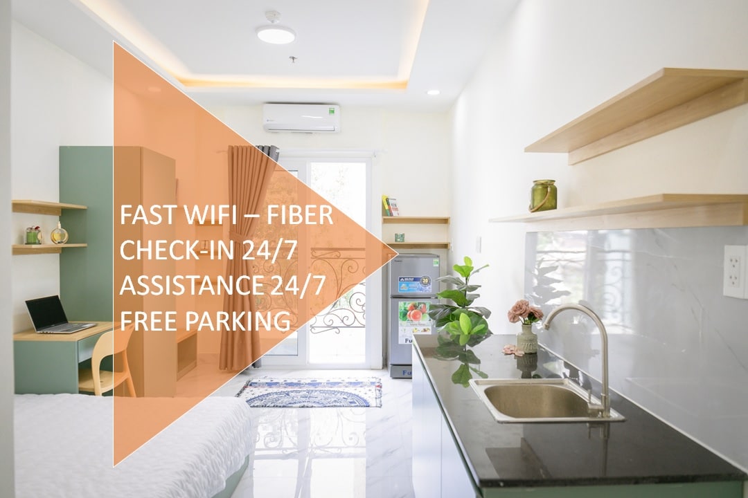 Pho Quang'daki stüdyo daire konfor, kolaylık ve modernliğin ilginç bir kombinasyonunu sunuyor. - Tan Binh'in göbeğinde, Tan Son Nhat havaalanına yaklaşık 5 dakika uzaklıkta, ancak sessiz bir sokağın ortasında. Ayrıca, Botanica kat mülkiyeti, GS25, Kafe, Yüzme havuzu, Spor Salonu gibi diğer tesisler sadece birkaç adım uzaklıktadır. - Tasarımımız hareketli şehrin ortasında huzura yöneliktir. Daire tamamen mobilyalıdır; birçok olanak ve olanağa sahiptir.