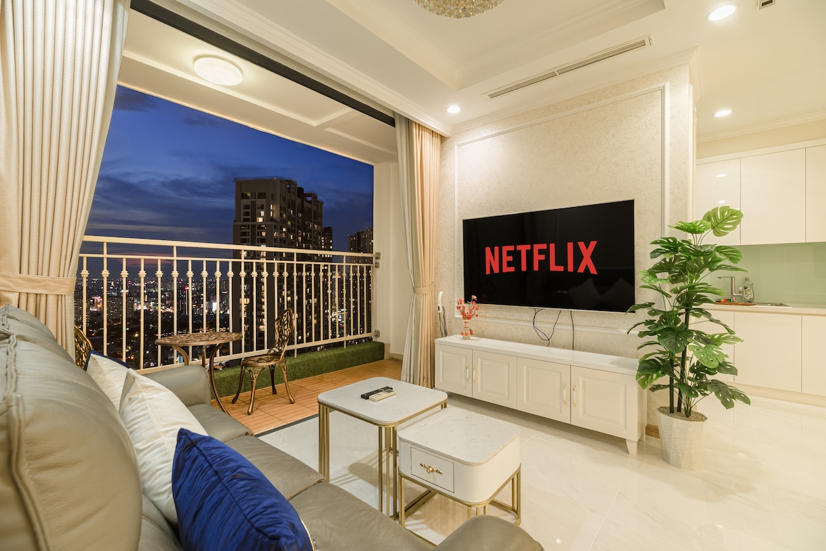 Luxury 5* The Opera Residence Corner Apartment by ChiHome - River View Bason District 1, The LandMark 81, The Galleria, The Mett Office, District 2 Sala Thiso Mall. - Kule B, Scala, Seviye 1x birim 10 - Boyut: 70 m2 (köşe ünitesi) - 2 yatak odası, 2WC, 2 -4 kişi konaklayabilir. - Netflix ve YouTube ile 65 inç Akıllı TV - Kanepe, koltuk, sehpa. - Yemek masası 4 sandalye - Tam donanımlı mutfak aletleri. - Yüksek hızlı kablosuz internet mevcuttur. • Tüm ev için klima. - Binaya 7/24 erişim.