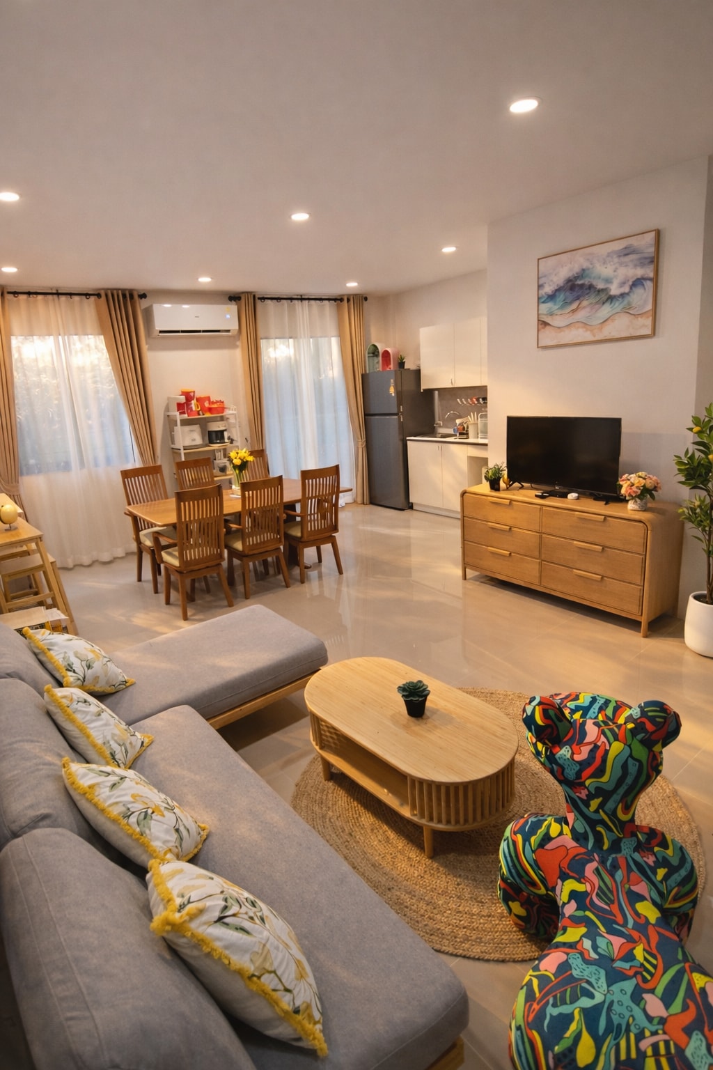 Silapasom ARTstay, Suratthani'nin Phun Phin Bölgesi'ndeki bir yamaç köyünde bulunan rahat bir inziva yeridir. Büyük ağaçlar ve kauçuk tarlalarla çevrilidir ve milli parkı anımsatan doğal bir yaprak dökmeyen atmosfer yaratır. Ev, ücretsiz KABLOSUZ İNTERNET BAĞLANTISI da dahil olmak üzere tüm temel olanaklarla donatılmıştır ve 4 yatak odası, 5 banyo, mutfak, yemek alanı ve geniş bir yaşam alanı bulunmaktadır. En fazla 8 kişi rahatça konaklayabilir, bu da aileler ve arkadaş grupları için mükemmeldir.