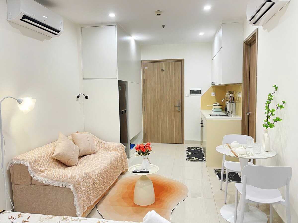 Stüdyo Daire – Vinhomes Grand Park (Havuz Manzaralı) Sofistike tasarımlı stüdyo dairede modern ve konforlu alanı deneyimleyin, alan optimize edilmiştir ancak yine de tamamen işlevseldir. Dairede yumuşak bir yatak, kanepe, TV, tam donanımlı özel mutfak (buzdolabı, ocak, mikrodalga fırın, su ısıtıcısı, yemek masası) ve temiz bir özel banyo bulunmaktadır. Havuzu gören havadar penceresi rahatlatıcı ve keyifli bir his sağlar.