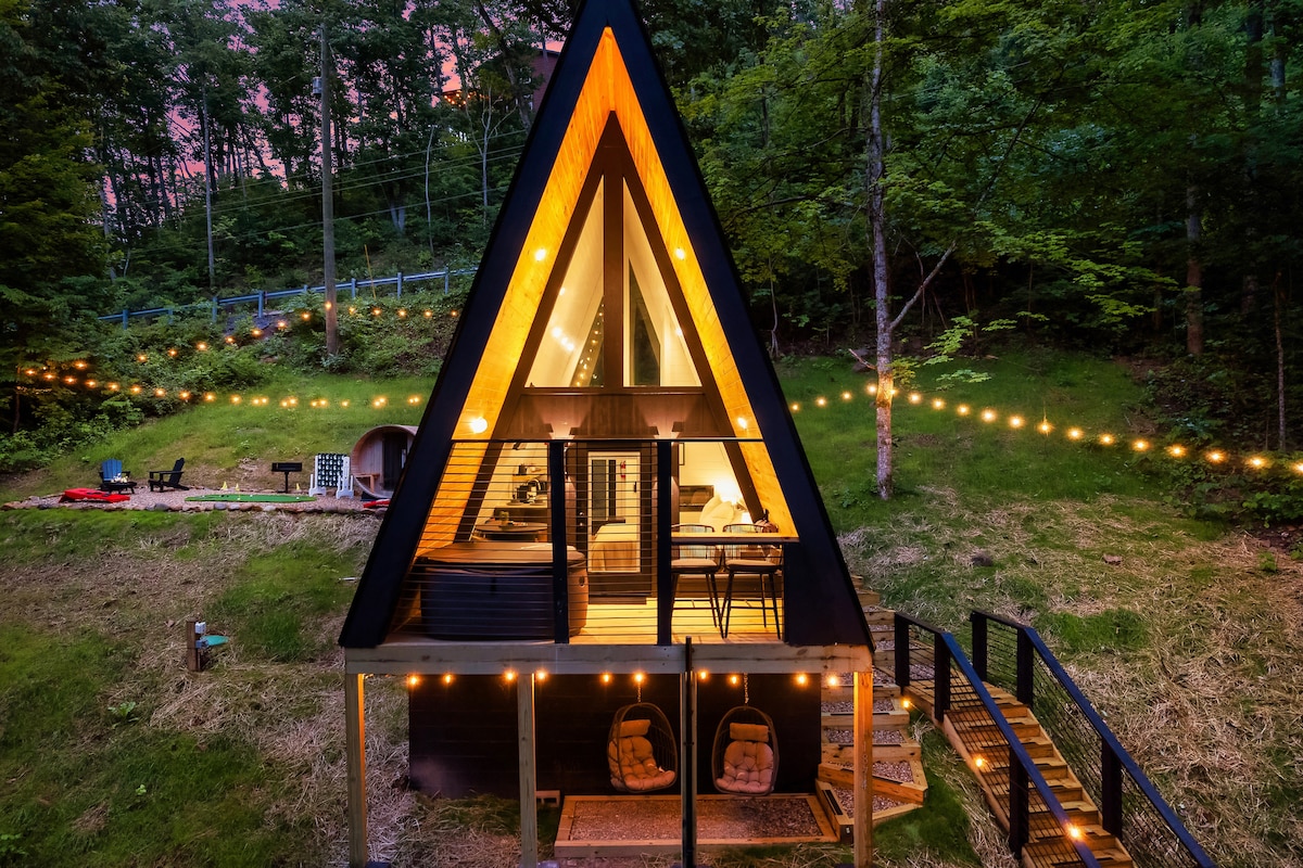Üçgen Çatı Ağaç Ev, Sauna, Mini Golf, Her Şey Var