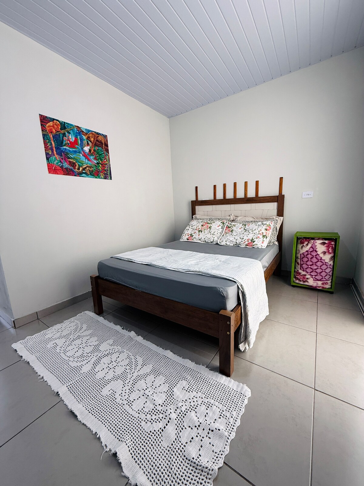 Bu sessiz ve iyi konumdaki yerde sadeliği kucaklayın. - Şehir merkezi: 2 dakika 🚗; 5 dakika yürüme mesafesindedir. 1 çift kişilik yatak, 1 tek kişilik yatak ve 1 çift kişilik şilte ve 1 tek kişilik şilte ayrılmıştır. Mekânda lavabo, ağızdan indüksiyonlu ocak, buzdolabı ve çanak çömlek bulunmaktadır. Barbekü ızgarası olan bir GURME ALANI vardır. Şehir Manzaraları: - Lago Azul: Park girişine🚗 5 dakika, yürüyerek 15 dakika. - Linear Park: 5 dakika; - Peão da Cidade Festivali: 2 dakika. ÇAMAŞIR ODASI KONAKLAMA ALANININ BİR PARÇASI DEĞİLDİR.