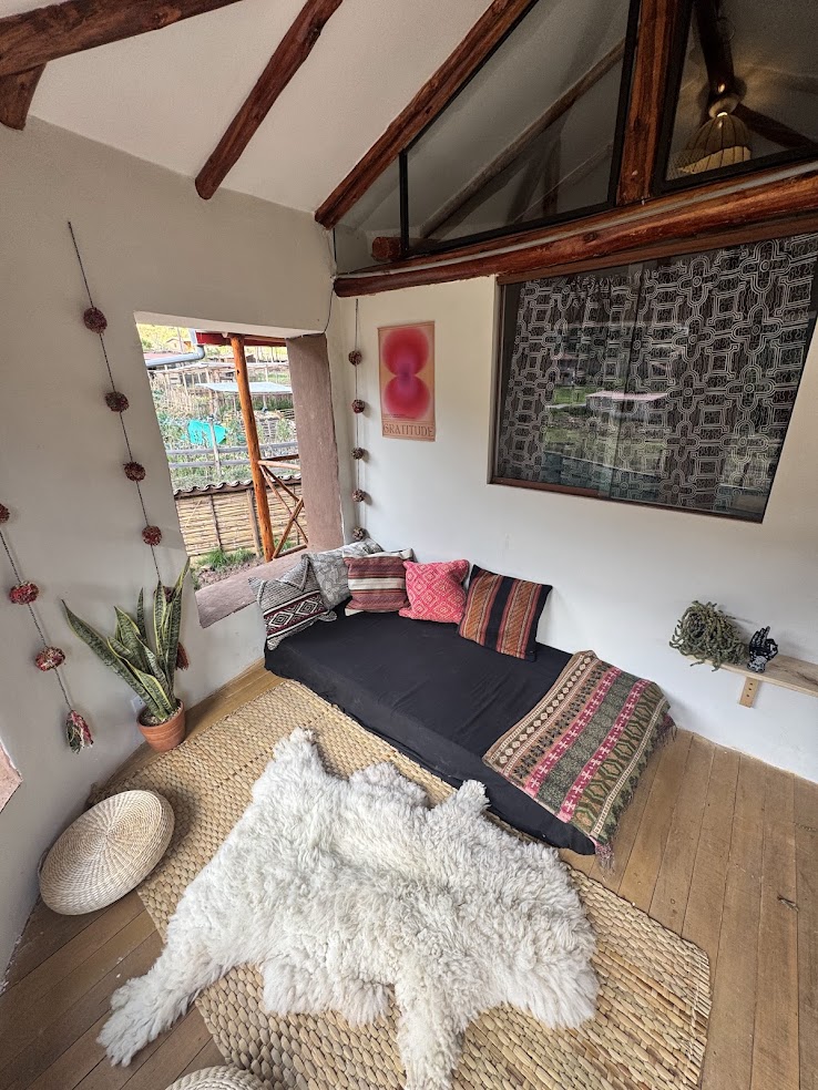 Aktif gezginler için tasarlanan 2 yatak odalı kerpiç evimiz, Kutsal Vadi ve Pisac'ın muhteşem manzarasına sahiptir. Apu Linli Dağı'nın eteklerinde yer alan bu sakin ortamda misafirler kuşların, yerli bitkilerin, bahçelerin ve yürüyüşlerin tadını çıkarır. İyi donanımlı mutfağı, kapalı verandası, ateş çukuru, çamaşır makinesi ve kablosuz internet bağlantısı ile bu misafirhane aile veya arkadaşlar için idealdir. Buraya ulaşmak için: İnka mısır terasları boyunca Pisac'tan 20 dakika yürüyün veya 5 dakikalık bir mototaksi alın ve mülk kapısına 100 metre yokuş yukarı yürüyün.