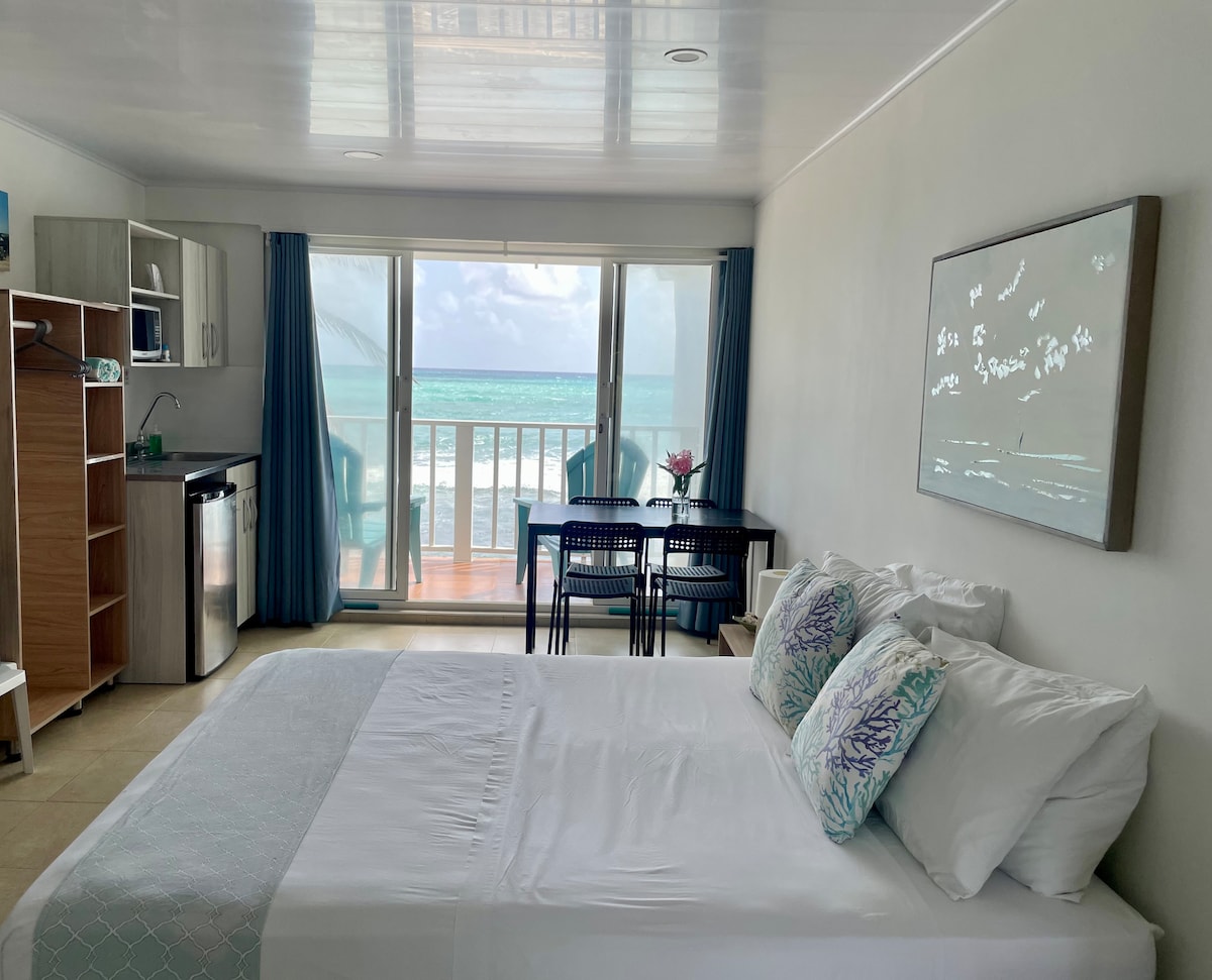Bağımsız apartman dairesi, taze ve berrak. Yakın zamanda bir çift olarak unutulmaz bir tatil geçirmek için tüm konforlarla yenilenmiştir. 2 Queen yataklı bir oda, banyo, tam donanımlı mutfak ve yemek odasından oluşur. Sound Bay Plajı'na üç blok uzaklıktadır. Adanın merkezinde, San Luis'in bir sektörü bulunmaktadır.