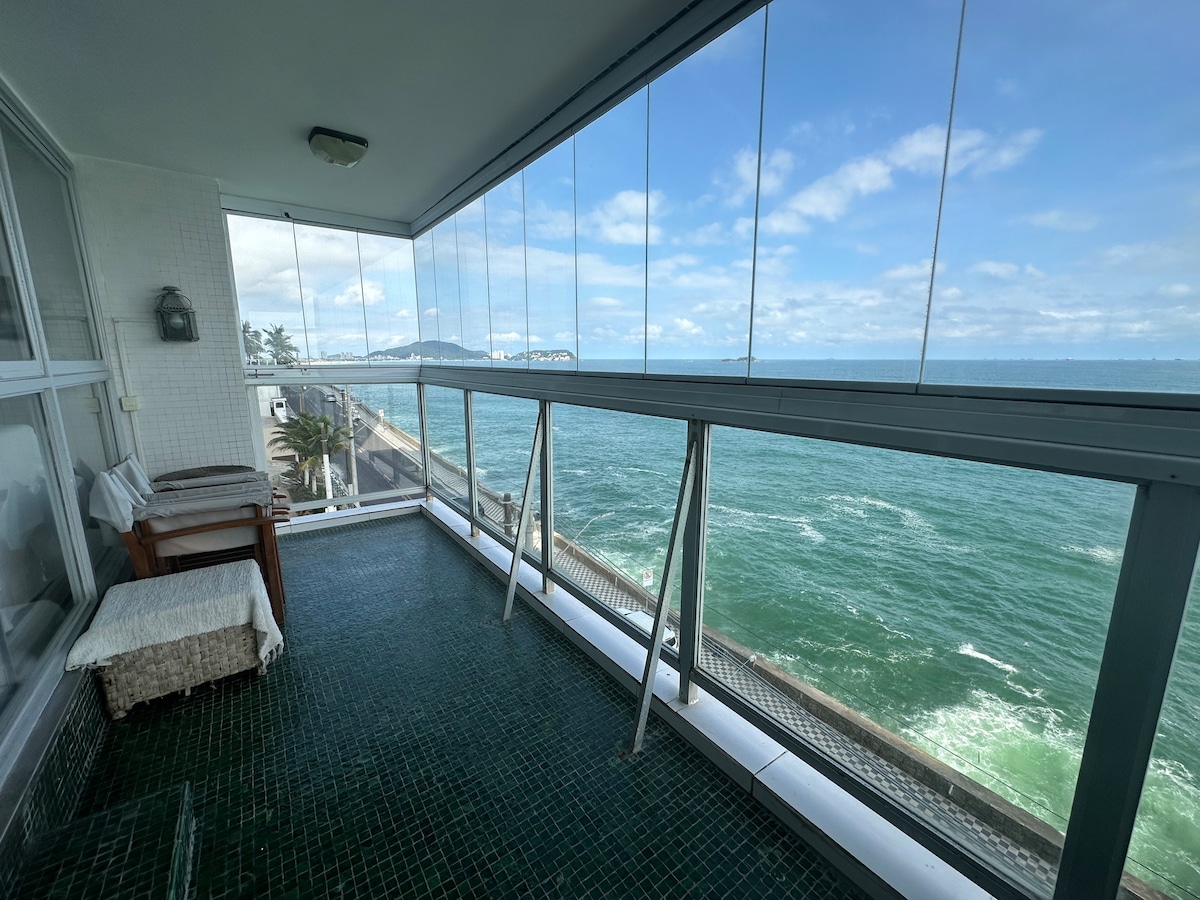Pé na areia, praia bem em frente, basta atravessar a rua. Ar condicionado Daikin frio/quente na sala e 2 quartos, 2 banheiros, WI-FI ultra rápido, smartTVS LG 50" e Samsung 43".Ampla varanda,vista incrível da praia, mesa,cadeiras, rede. Andar alto, claro,arejado,melhor ponto do calçadão. Ventilador teto ou parede em todos ambientes. Cozinha completa. Excelente localização, faça tudo a pé: padaria,restaurantes,bares, lojas,bancos,mercados,farmácias,shopping,etc. Serviço de praia. Portaria 24 h.