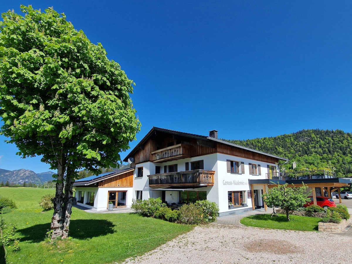 Şık mobilyalı daire, oturma alanı ve fantastik dağ panoraması ile devasa teras, 3 yatak odasında 6 kişiyi mükemmel bir hava, 3 SmartTV 46 inç, tam donanımlı mutfakta ağırlayabilir! Sessiz ama merkezi konumlu, fantastik yürüyüş ve bisiklet turlarının yanı sıra yakın çevrede Neuschwanstein'e 15 km mesafede birçok güzel göl!